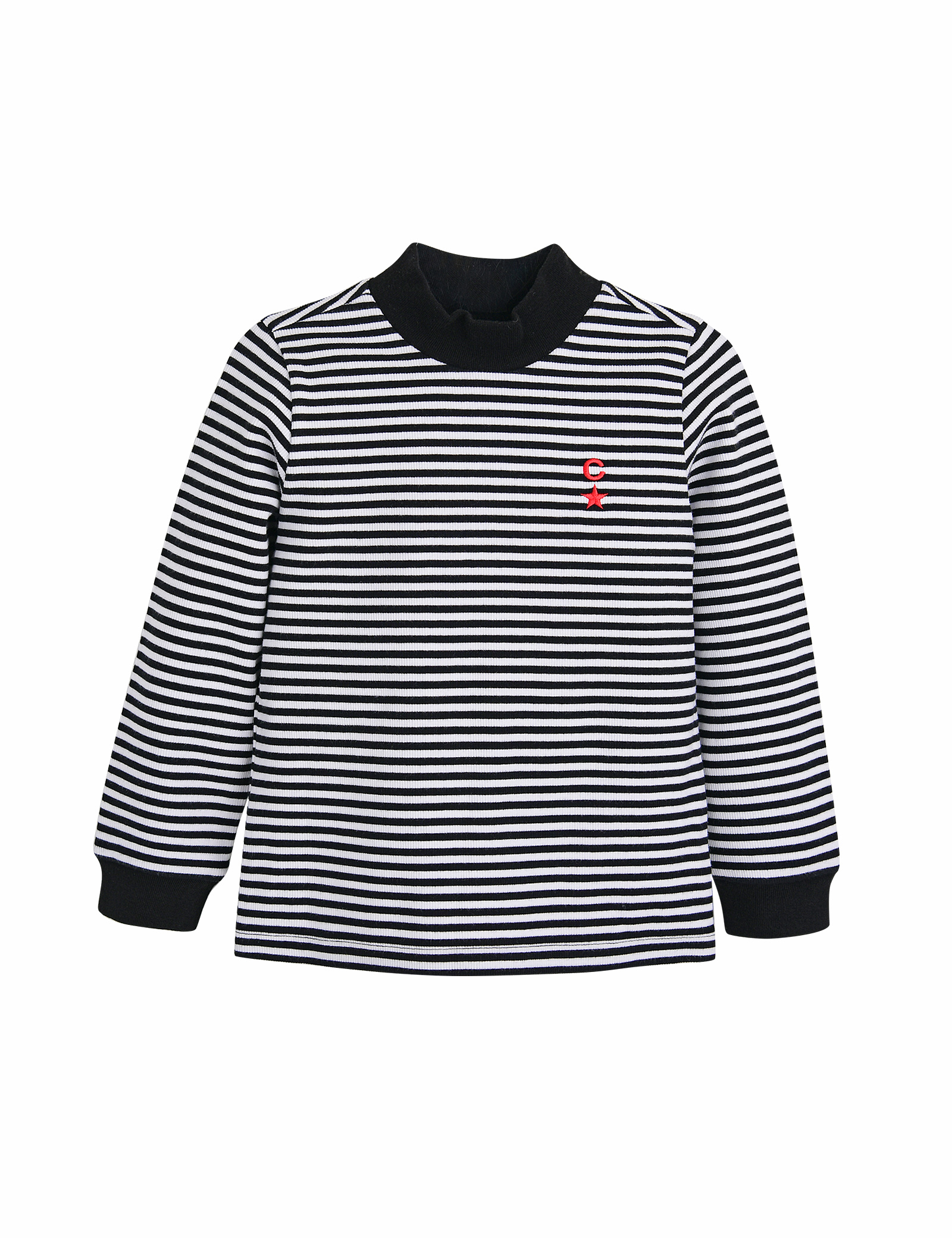 신축성이 좋은 골지 스트라이프 반목티셔츠입니다. 넥과 소매에 블랙 배색을 주어 레이어드에도 용이한 아이템입니다. 단독 착용하기에도 좋은 스타일리쉬한 디자인으로 가슴에 레드 자수 포인트로 완성도를 높였습니다.