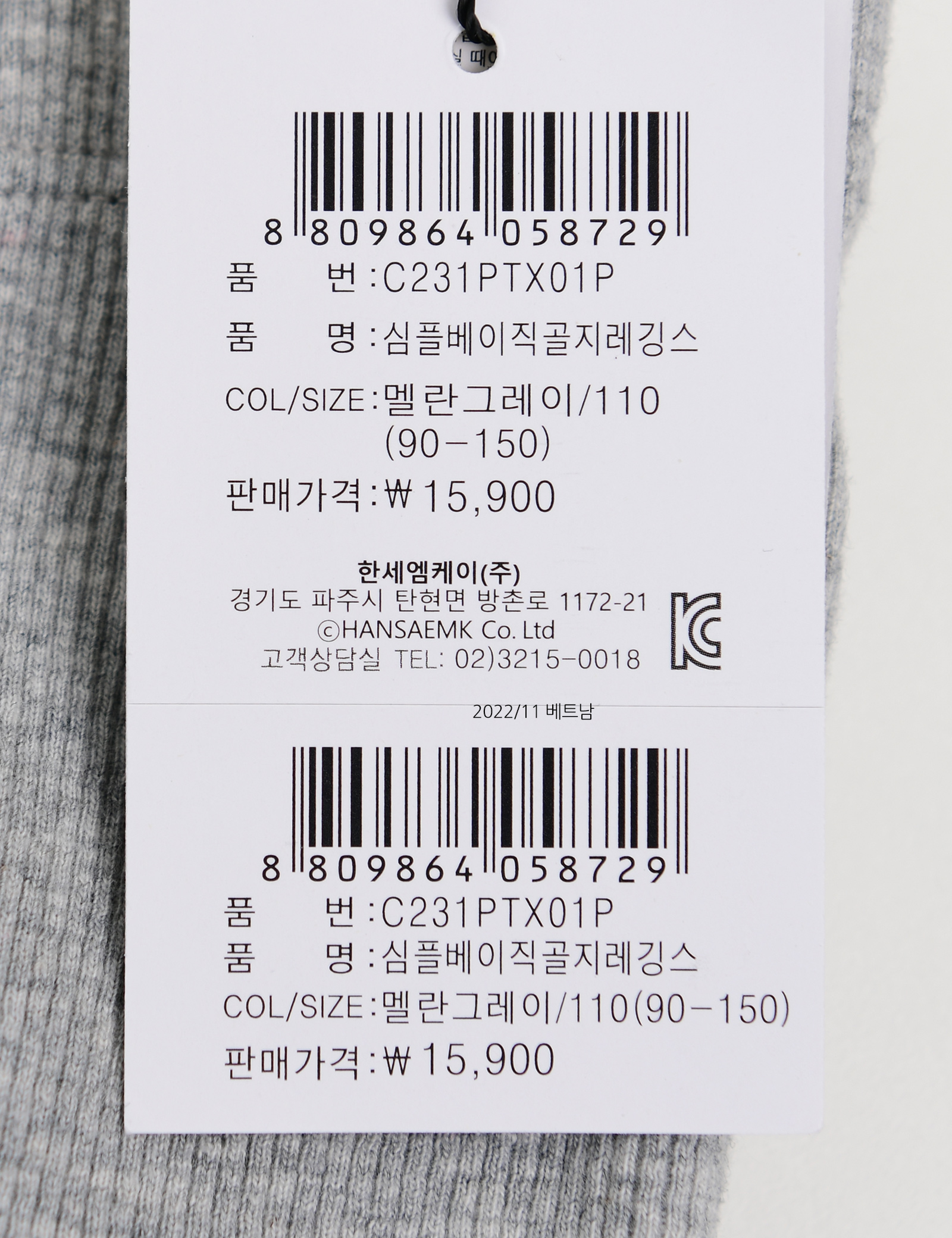 C231PTX01P [컬리수] 심플베이직골지레깅스