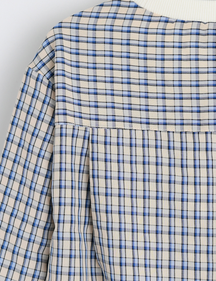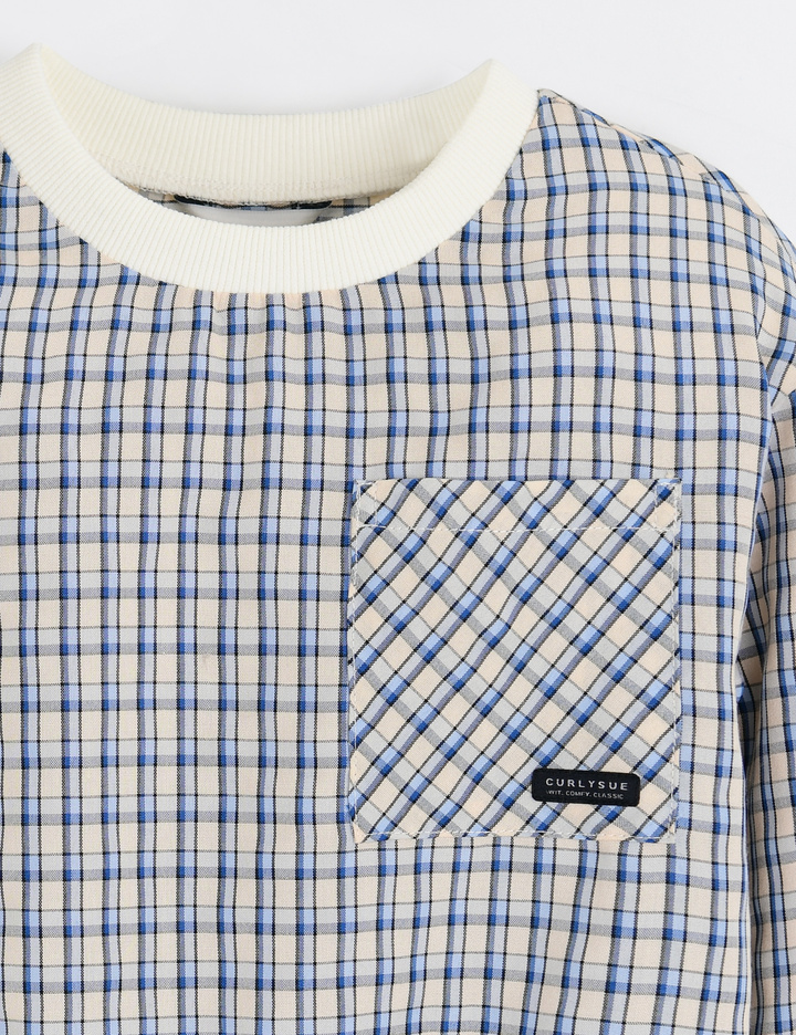 컬러감 있으면서도 모던한 느낌을 주는체크 패턴 원단을 사용한 맨투맨형 셔츠입니다. 맨투맨 형태의 상품으로 단추여밈 없이 편하게 한 번에 착용할 수 있는 상품입니다.