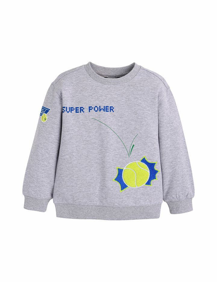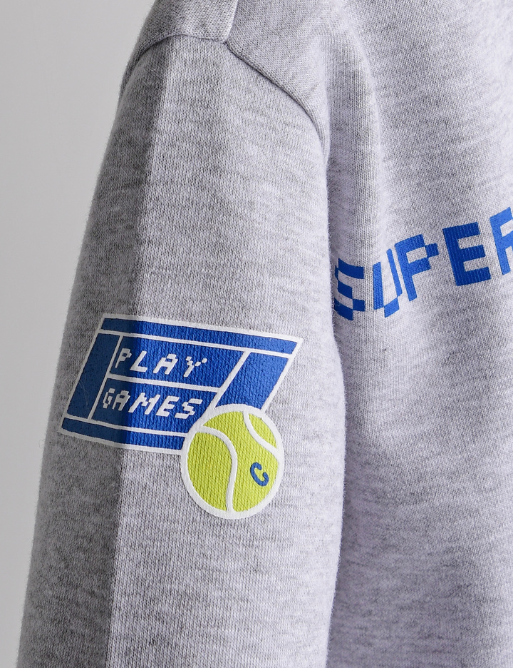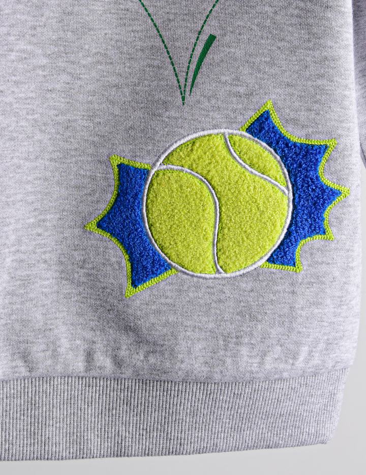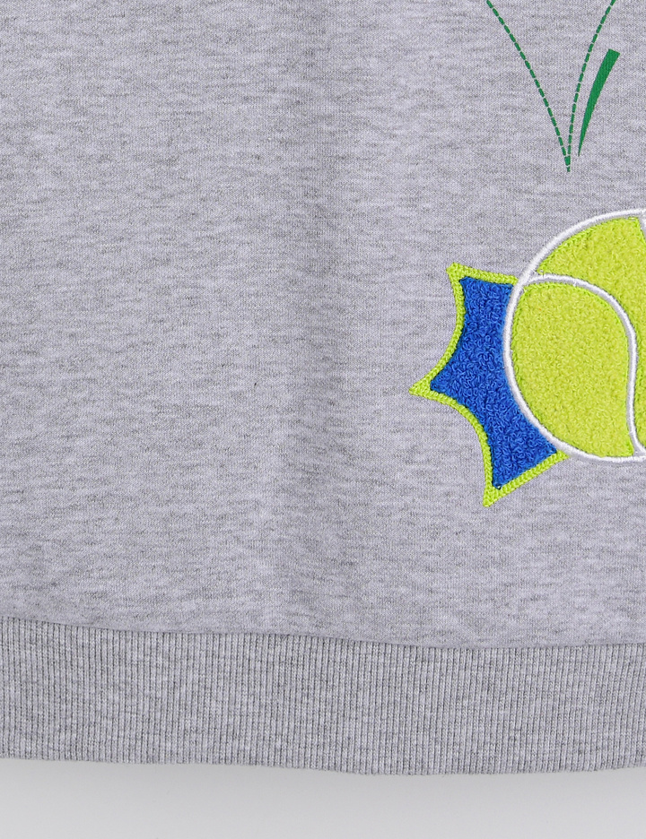 촉감이 느껴지는 입체적인 부클 아트웍기법을 사용한 맨투맨 티셔츠입니다. 화사한 컬러감의 테니스 모티브 아트웍이포인트인 상품으로 캐주얼한 코디로 활용하기 좋은 상품입니다.