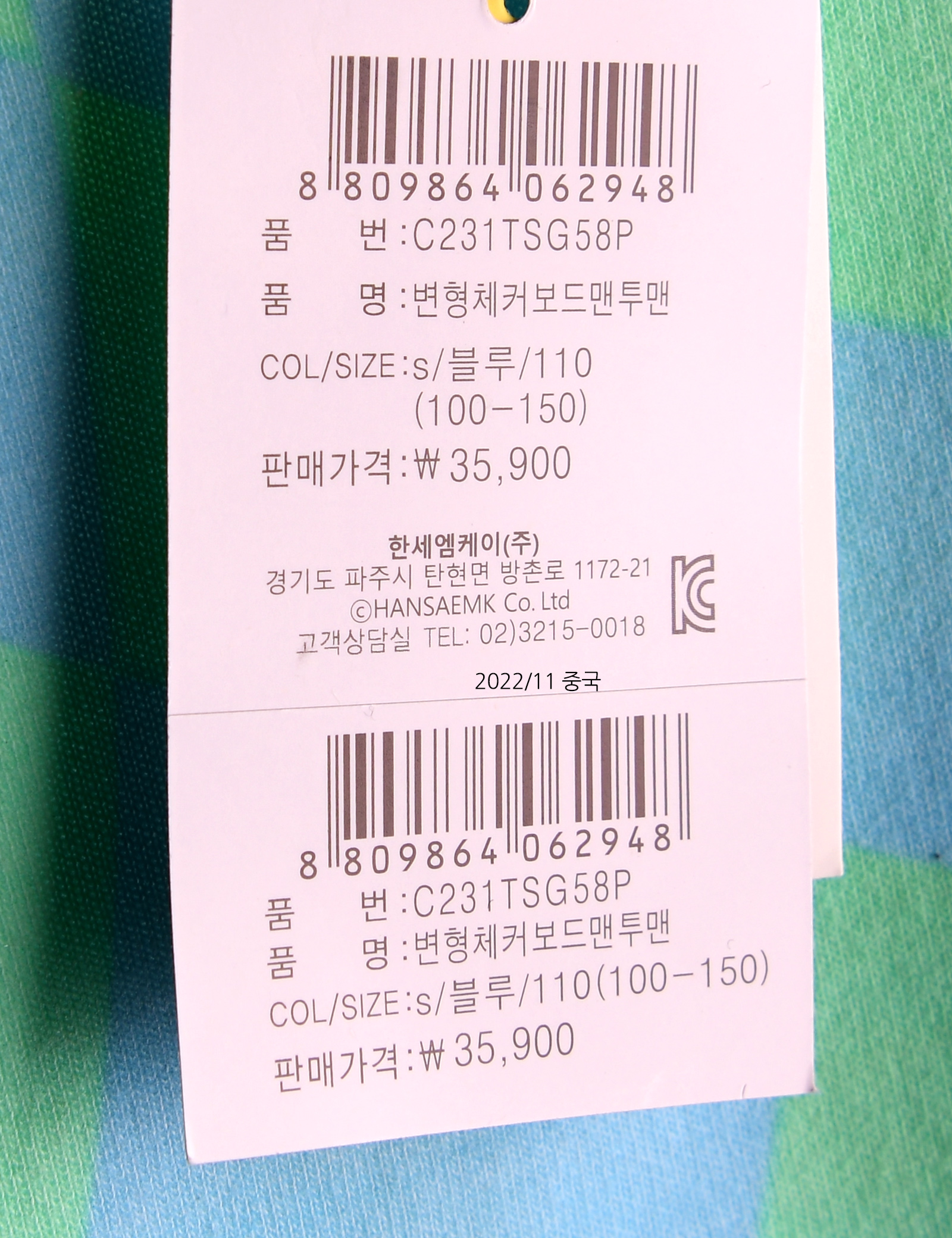 | 상품명 | [컬리수] 변형체커보드맨투맨 |