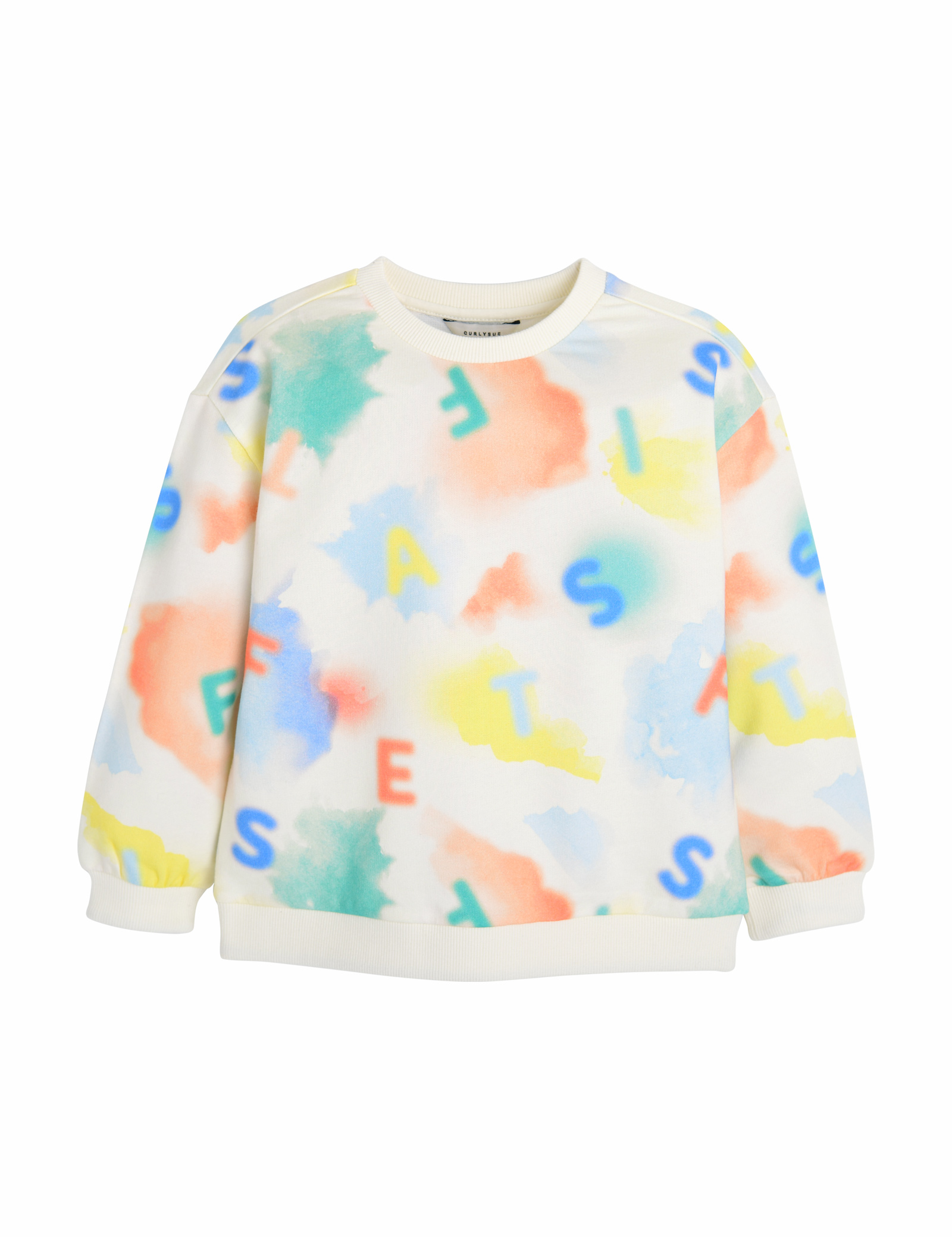 레터링이 믹스된 물나염 맨투맨티셔츠입니다. 두껍지않은 미니쭈리 원단을 사용하여 봄 시즌 내내 착용하기 좋으며화사한 컬러감이 돋보이는 아이템입니다.