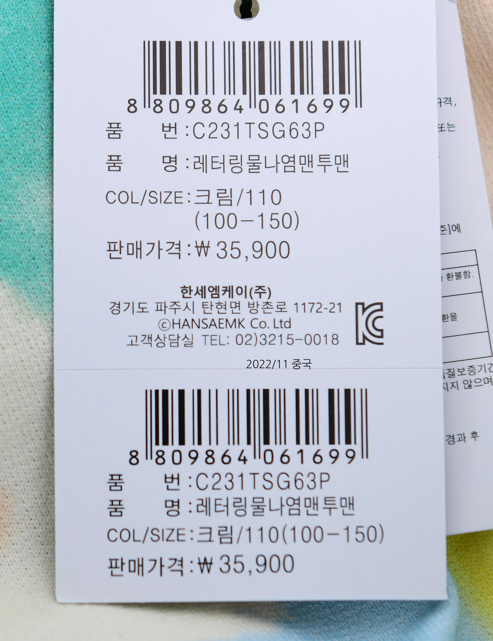 C231TSG63P ★스타일데이 행사가 적용상품★ [컬리수] 레터링물나염맨투맨