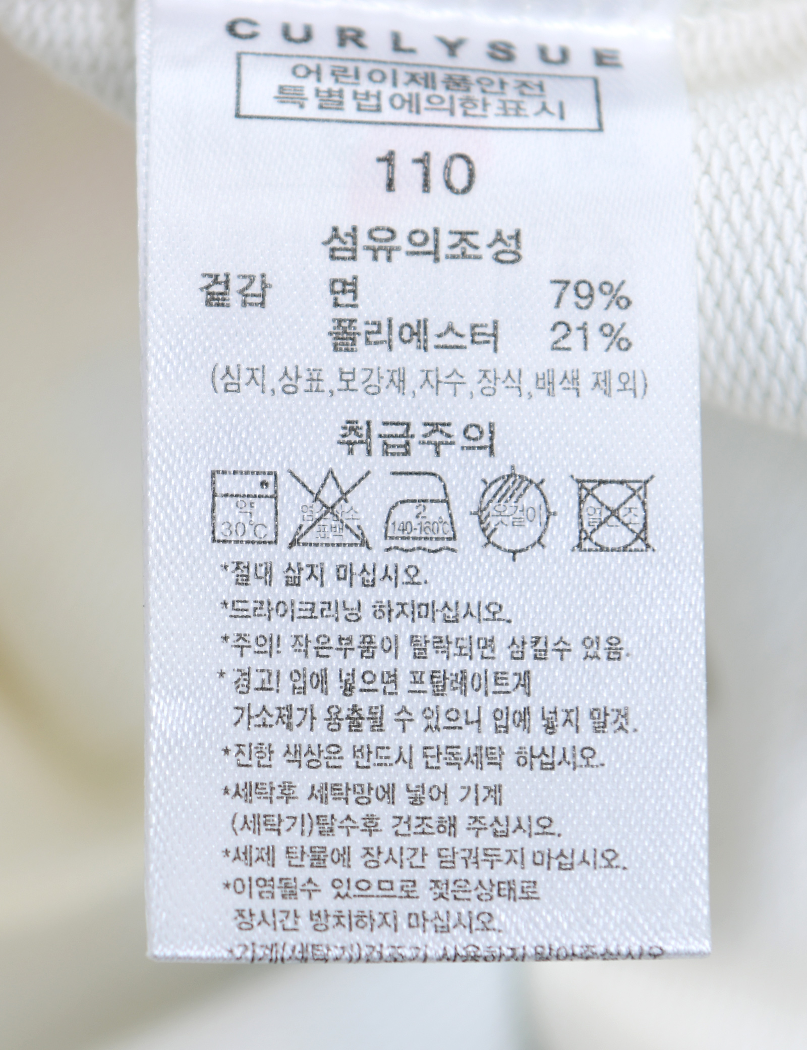 세탁방법 및 취급시 주의사항 본 세품은 손세탁 하십시오(케어라벨 참고)