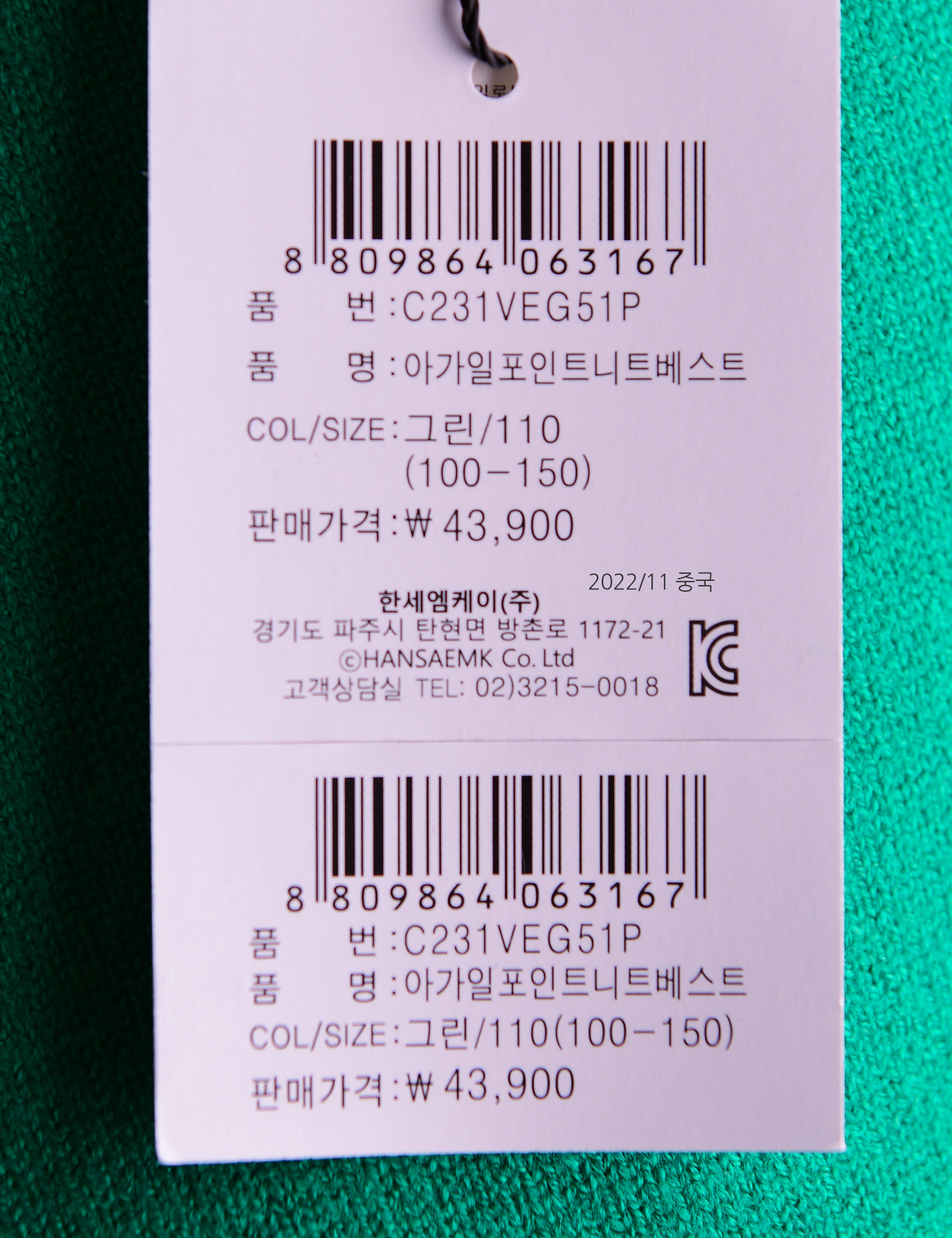 | 색상 | GREEN |