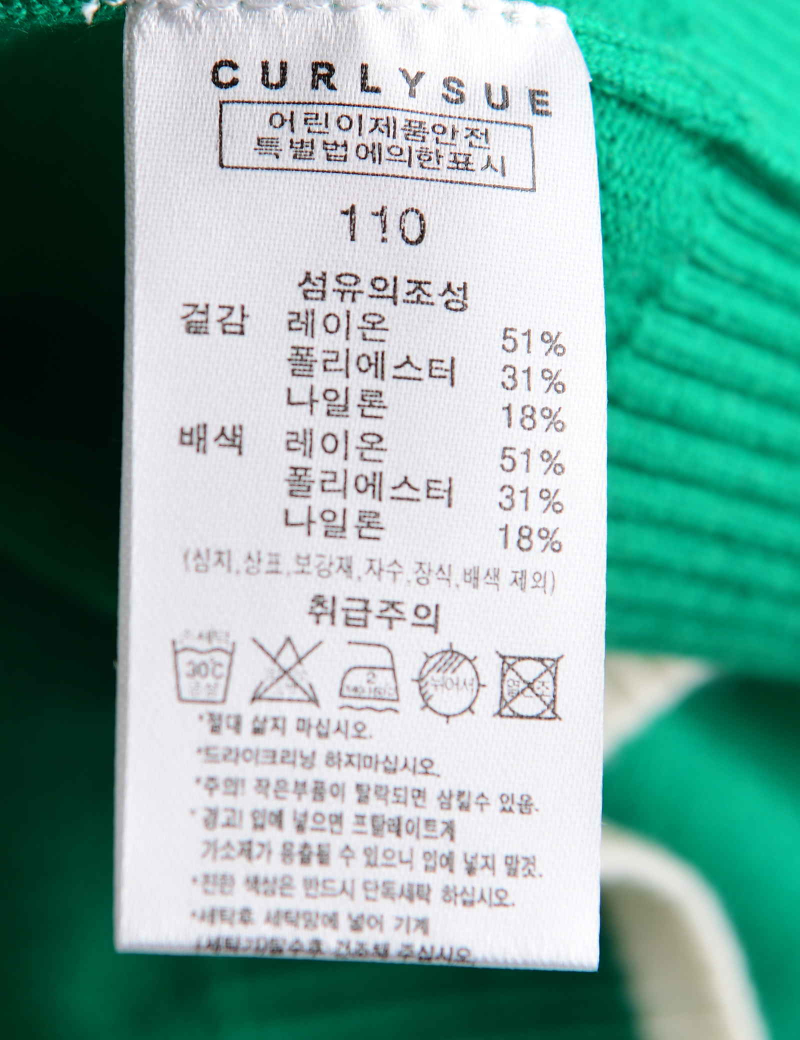 | 세탁방법 및 취급시 주의사항 | 본 세품은 손세탁 하십시오(케어라벨 참고) |