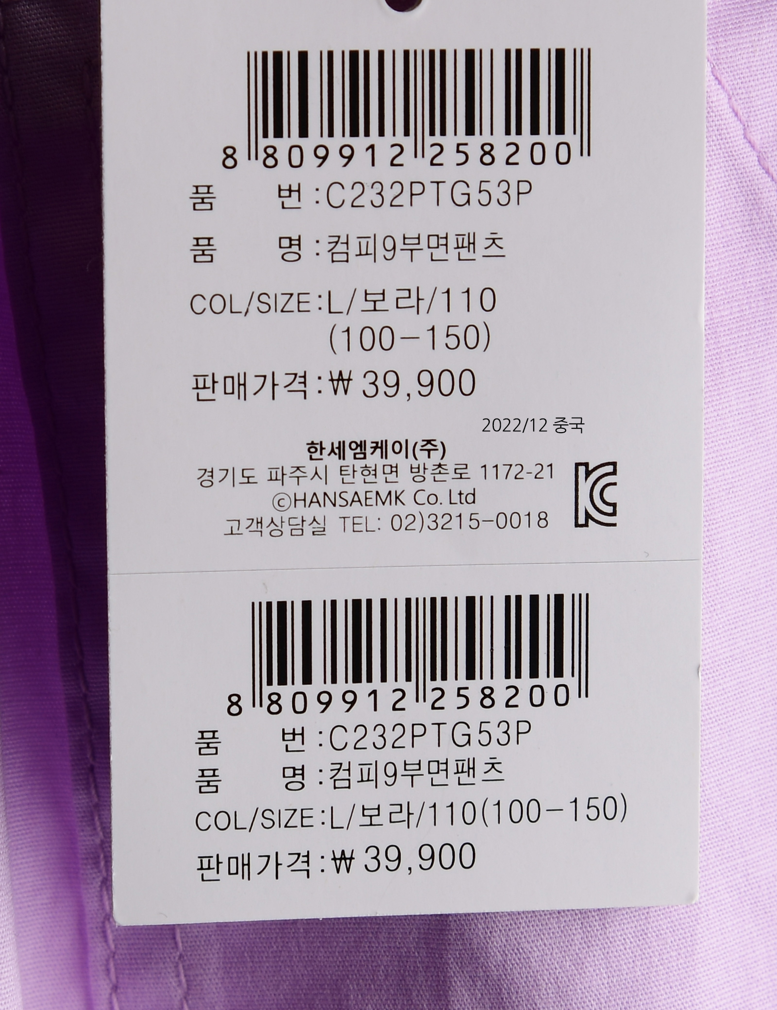 | 상품명 | [컬리수] 컴피9부면팬츠 |