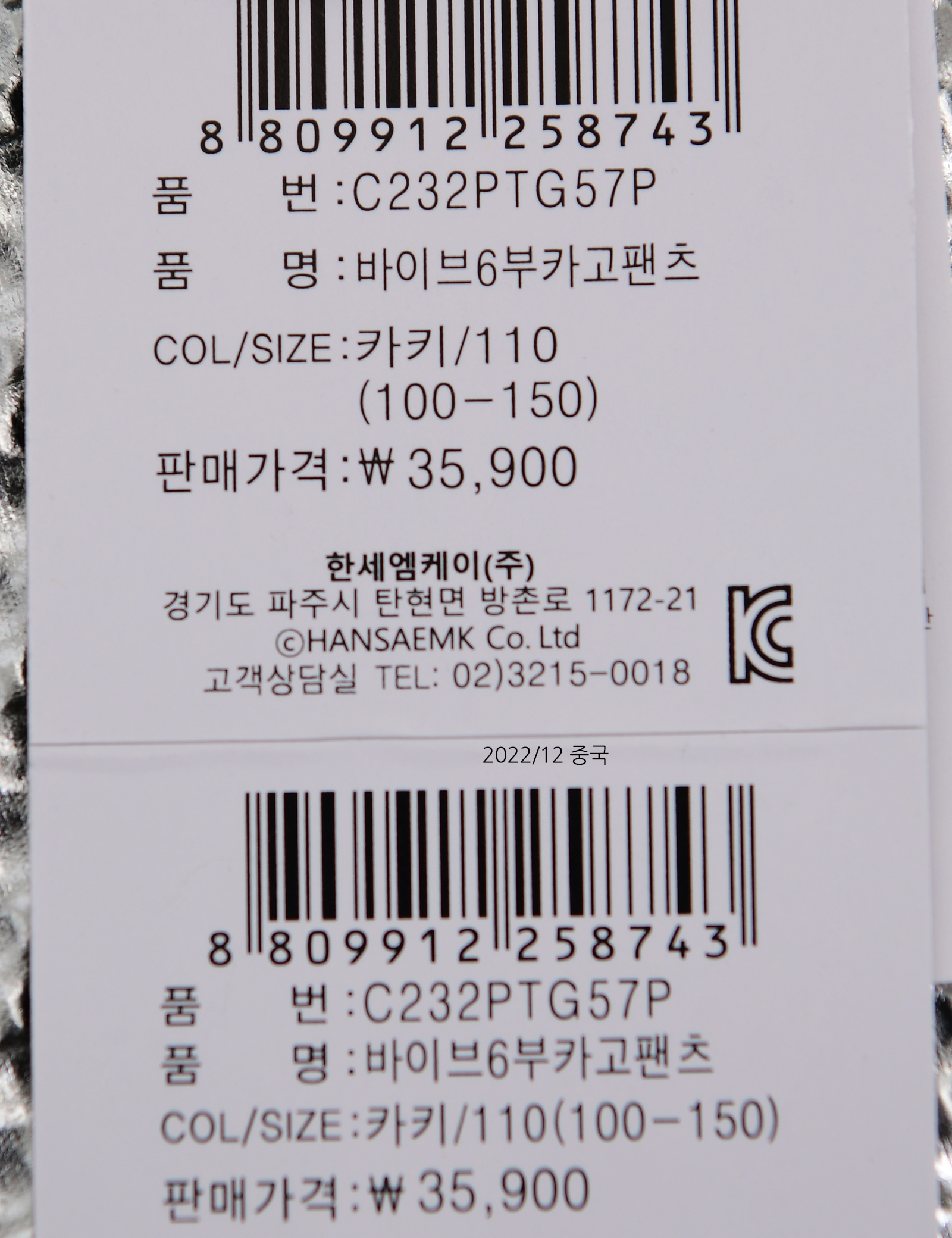 C232PTG57P ★스타일데이 행사가 적용상품★ [컬리수] 바이브6부카고팬츠