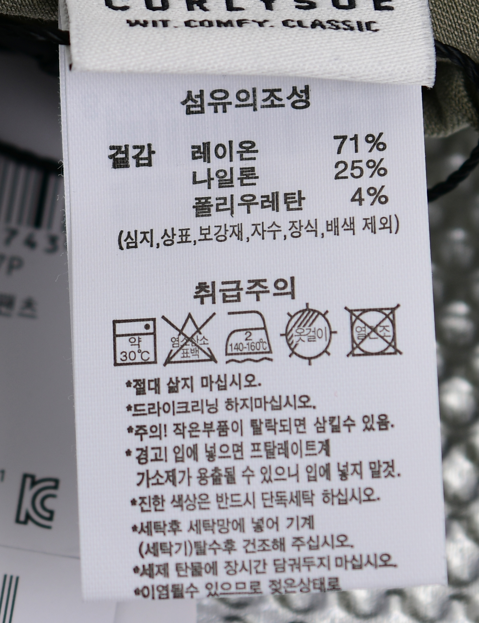제품소재 (겉감)레이온71%,나일론25%,폴리우레탄4%