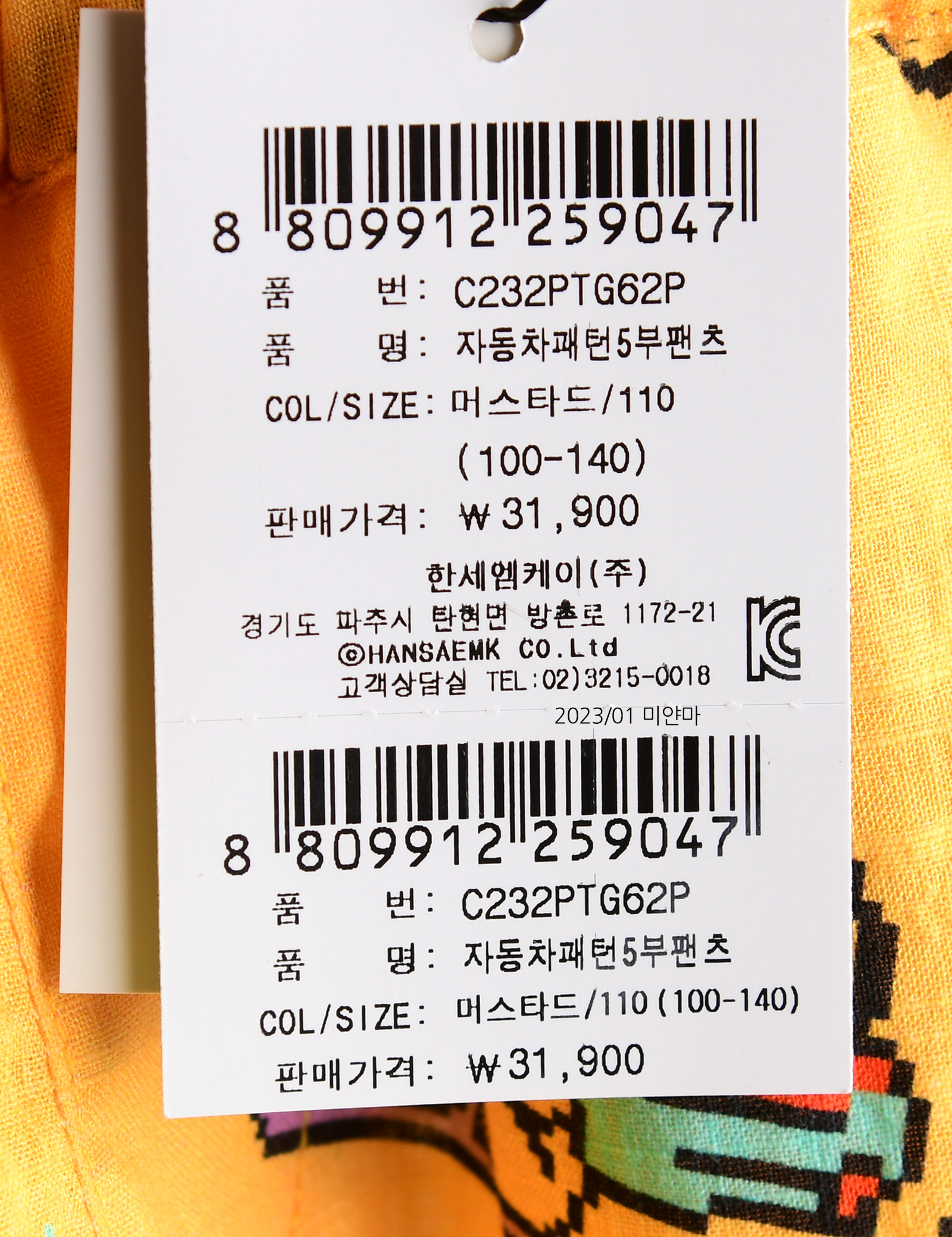 | 상품명 | [컬리수] 자동차패턴5부팬츠 |