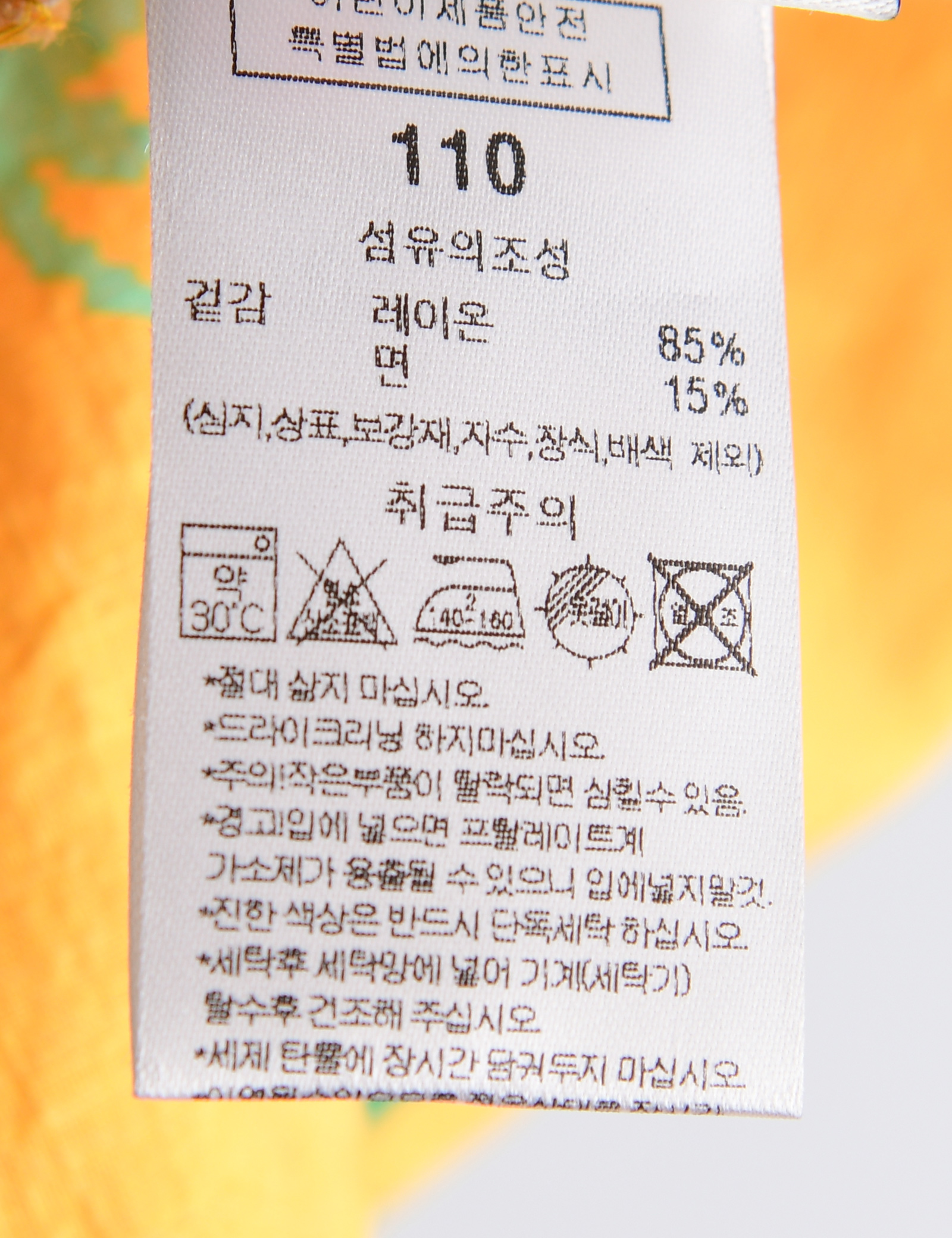 | 세탁방법 및 취급시 주의사항 | 본 세품은 손세탁 하십시오(케어라벨 참고) |