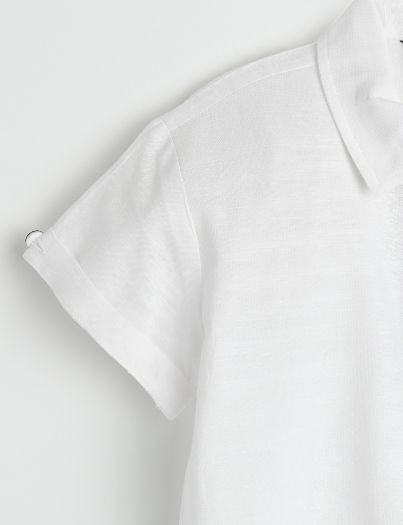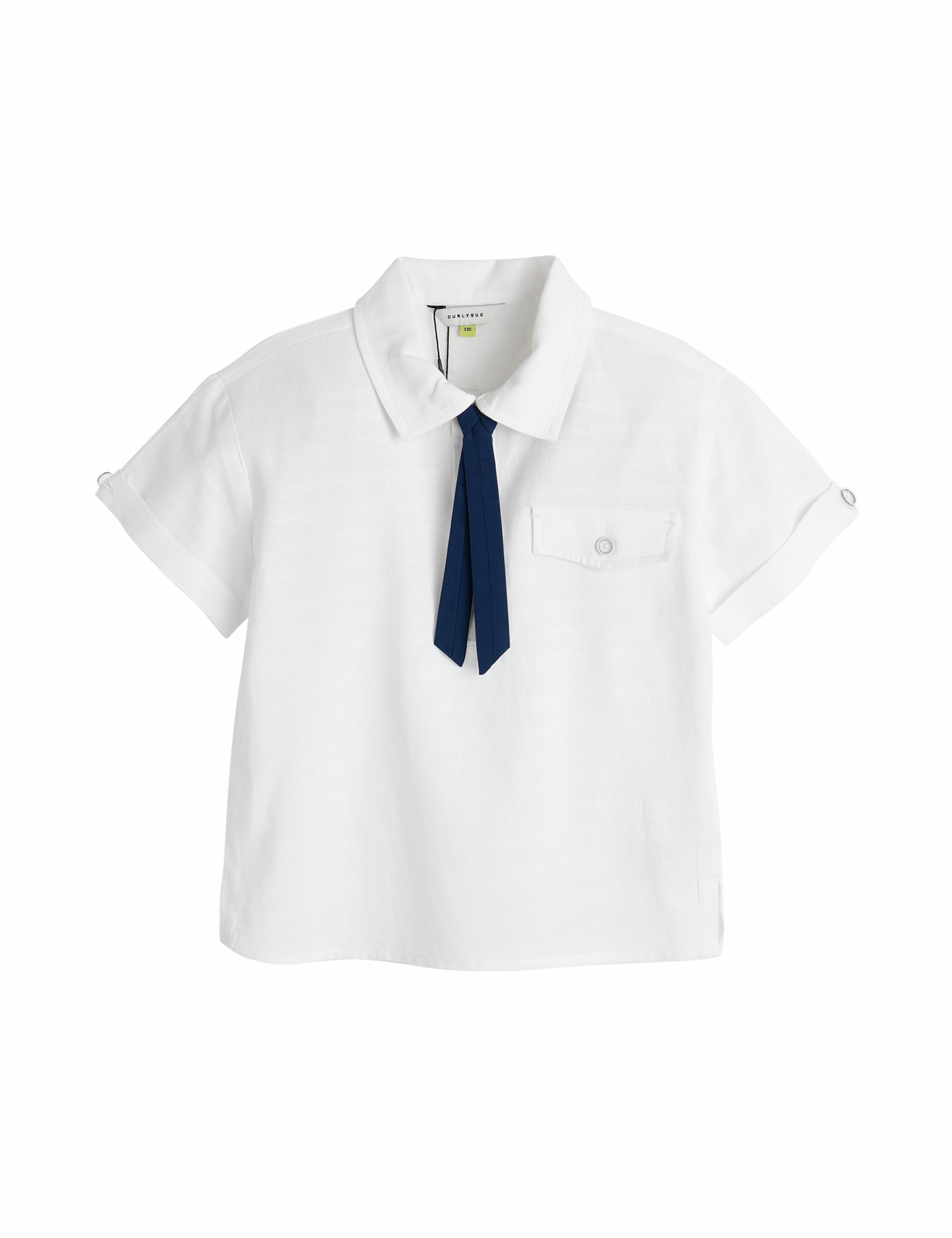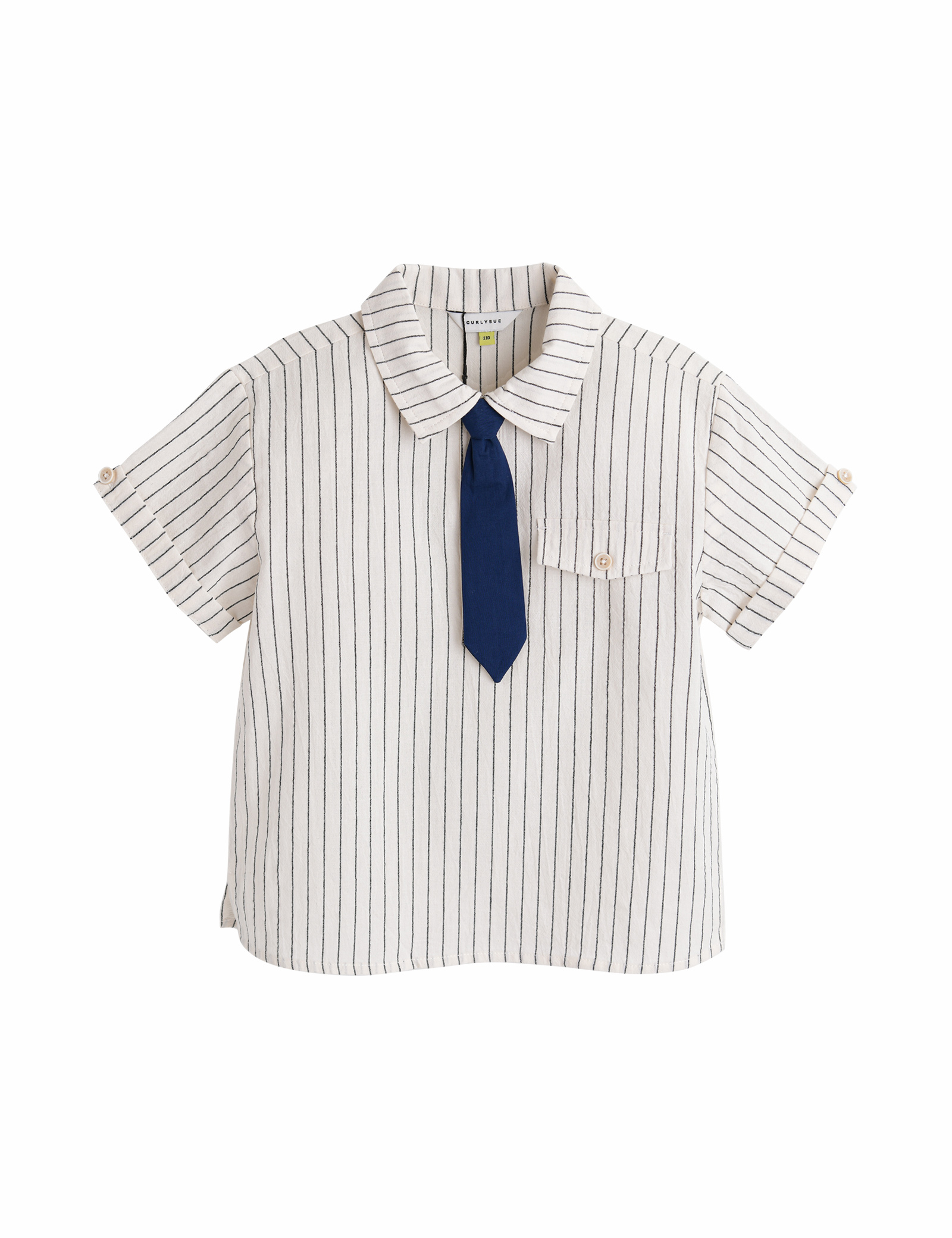 탈부착이 가능한 타이가 함께 구성되어타이를 착용하면 다른 느낌으로도 코디연출할 수 있는 반팔 셔츠입니다. 반타형식으로 쉽게 입고 벗을 수 있으며 조직감 있는 소재를 사용하여 고급스러운느낌을 주는 상품입니다.