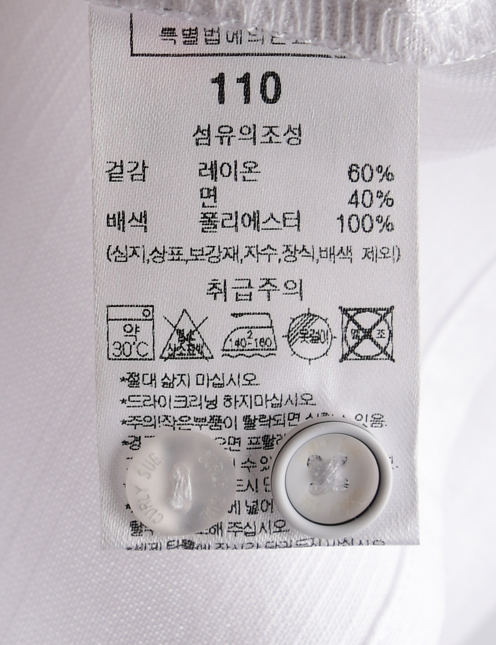 | 세탁방법 및 취급시 주의사항 | 본 세품은 손세탁 하십시오(케어라벨 참고) |