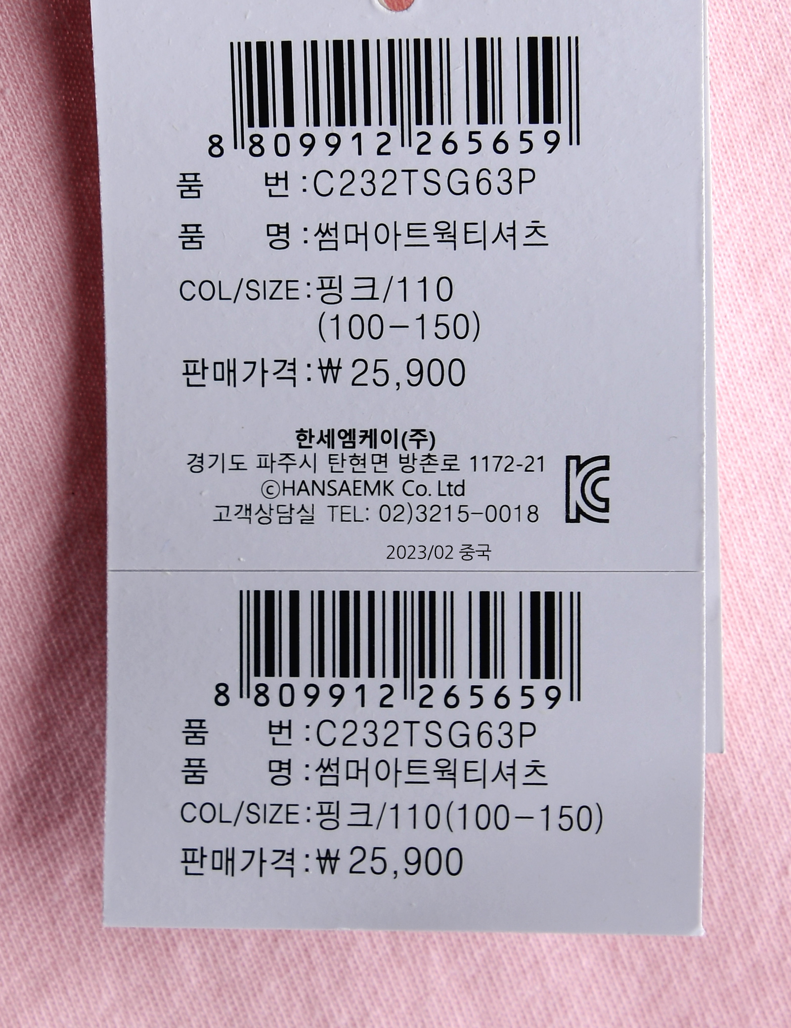 상품코드 C232TSG63P
