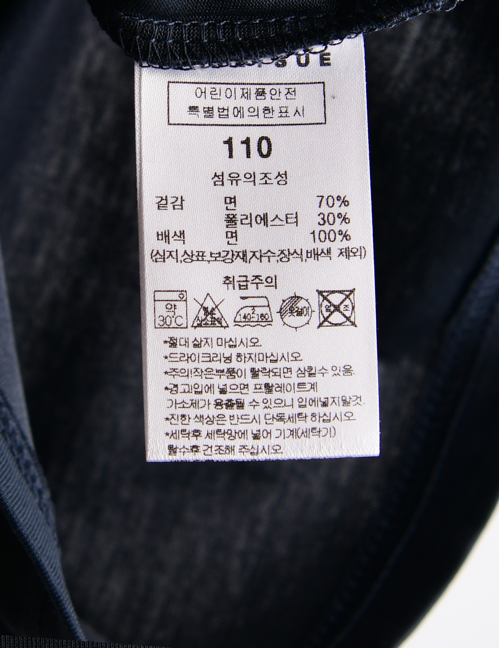 제품소재 (겉감)면70%,폴리에스터30%(배색)면100%