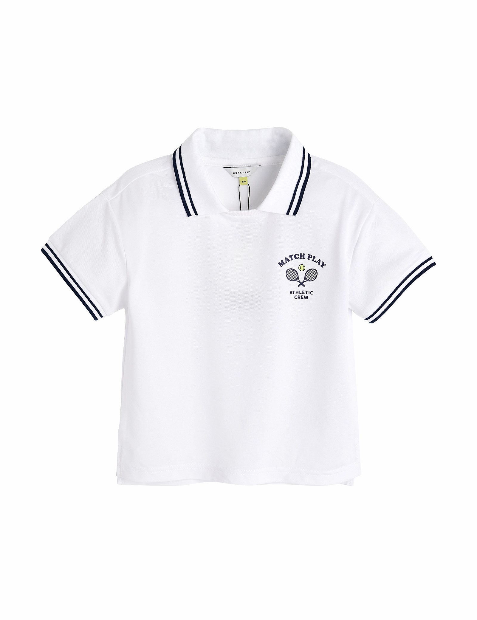신축성 있으면서도 터치감이 시원한 원단을 사용한 카라 티셔츠입니다. 가슴부분에 테니스 모티브 아트웍과 컬러 라인이 들어간 카라와 소매단 립 배색이테니스 룩의 느낌을 더해주는 상품입니다.