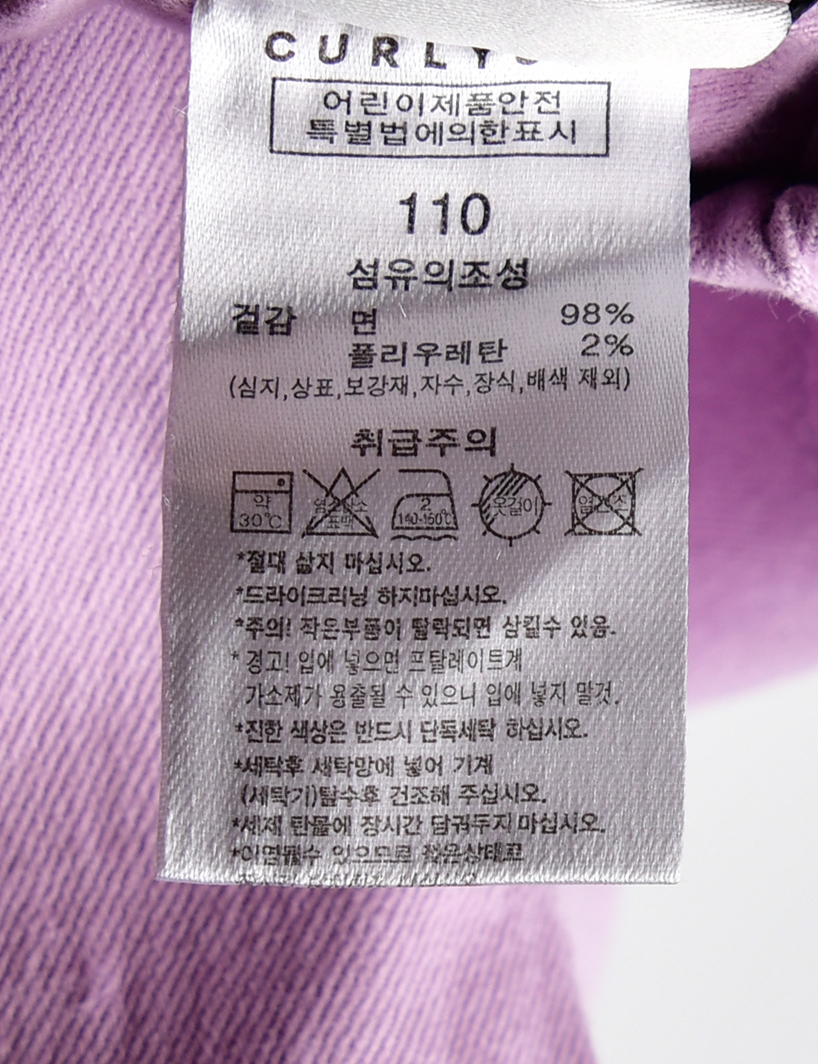 | 세탁방법 및 취급시 주의사항 | 본 세품은 손세탁 하십시오(케어라벨 참고) |