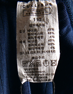 제품소재 (겉감/배색)레이온48%,폴리에스터48%,폴리우레탄4%
