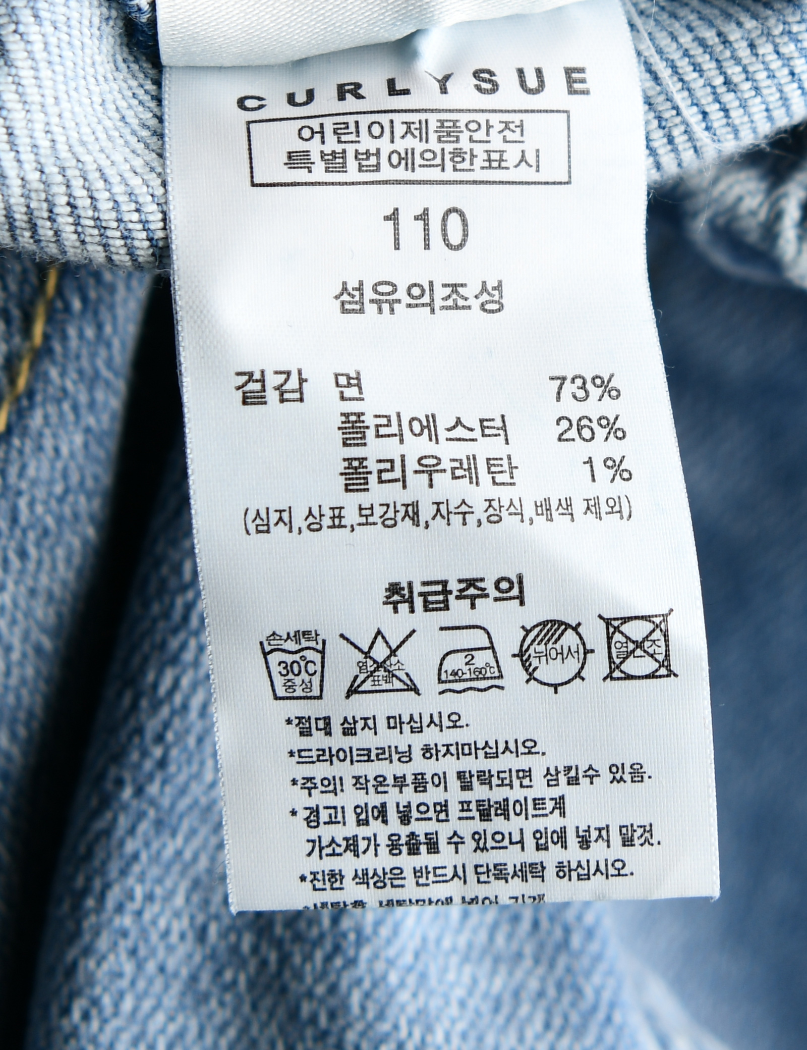 | 세탁방법 및 취급시 주의사항 | 본 세품은 손세탁 하십시오(케어라벨 참고) |