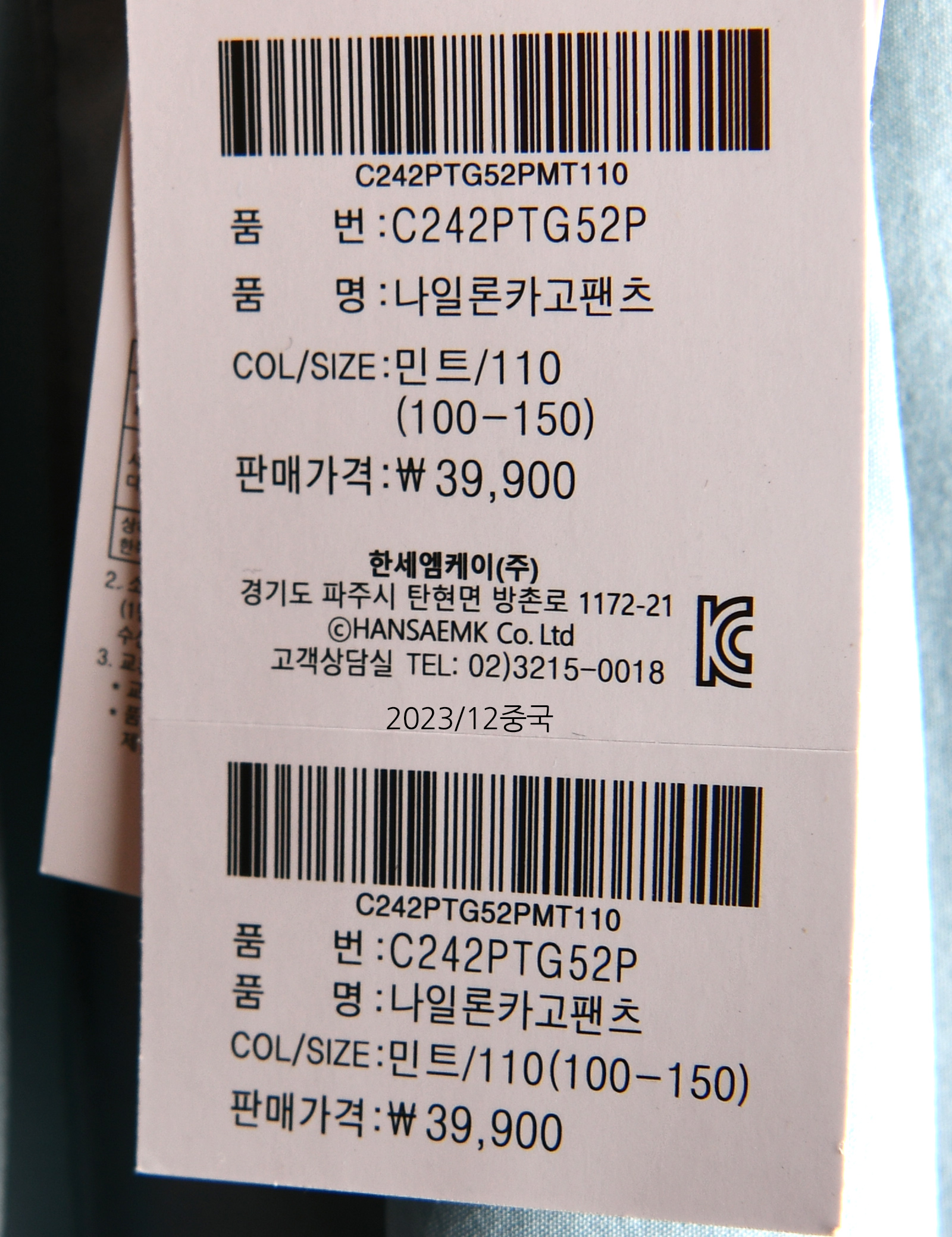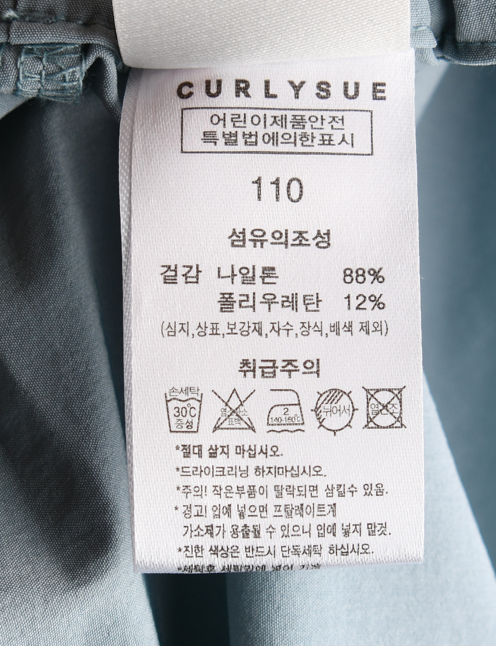 | 세탁방법 및 취급시 주의사항 | 본 세품은 손세탁 하십시오(케어라벨 참고) |