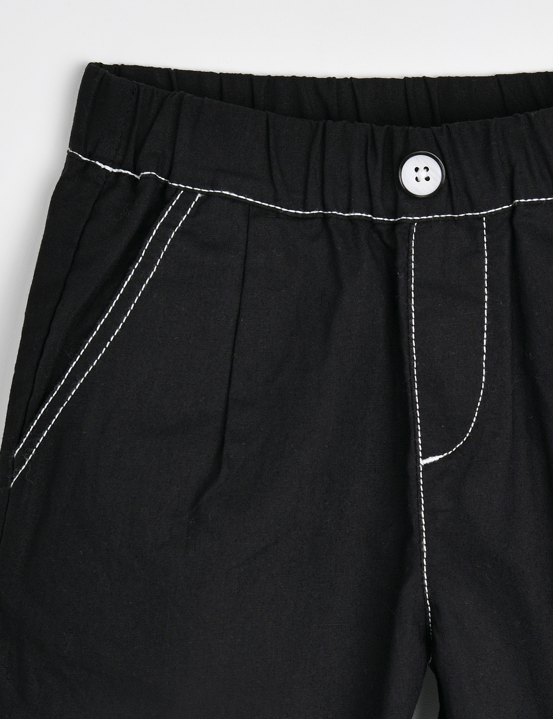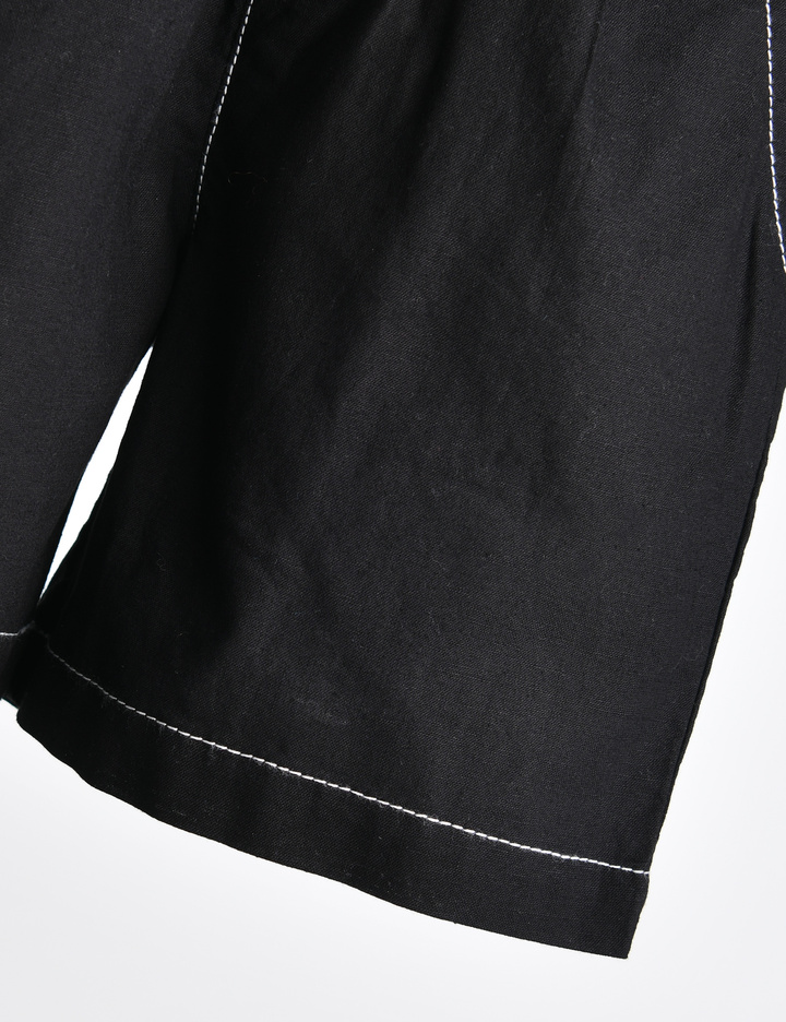 시원한 소재의 면린넨우븐 반바지입니다. 스팀으로 원단을 더욱 부드럽게 가공하였으며, 블랙 컬러는 스티치로 포인트 있게 디자인하였습니다. 상하 세트로입기에도 좋습니다.