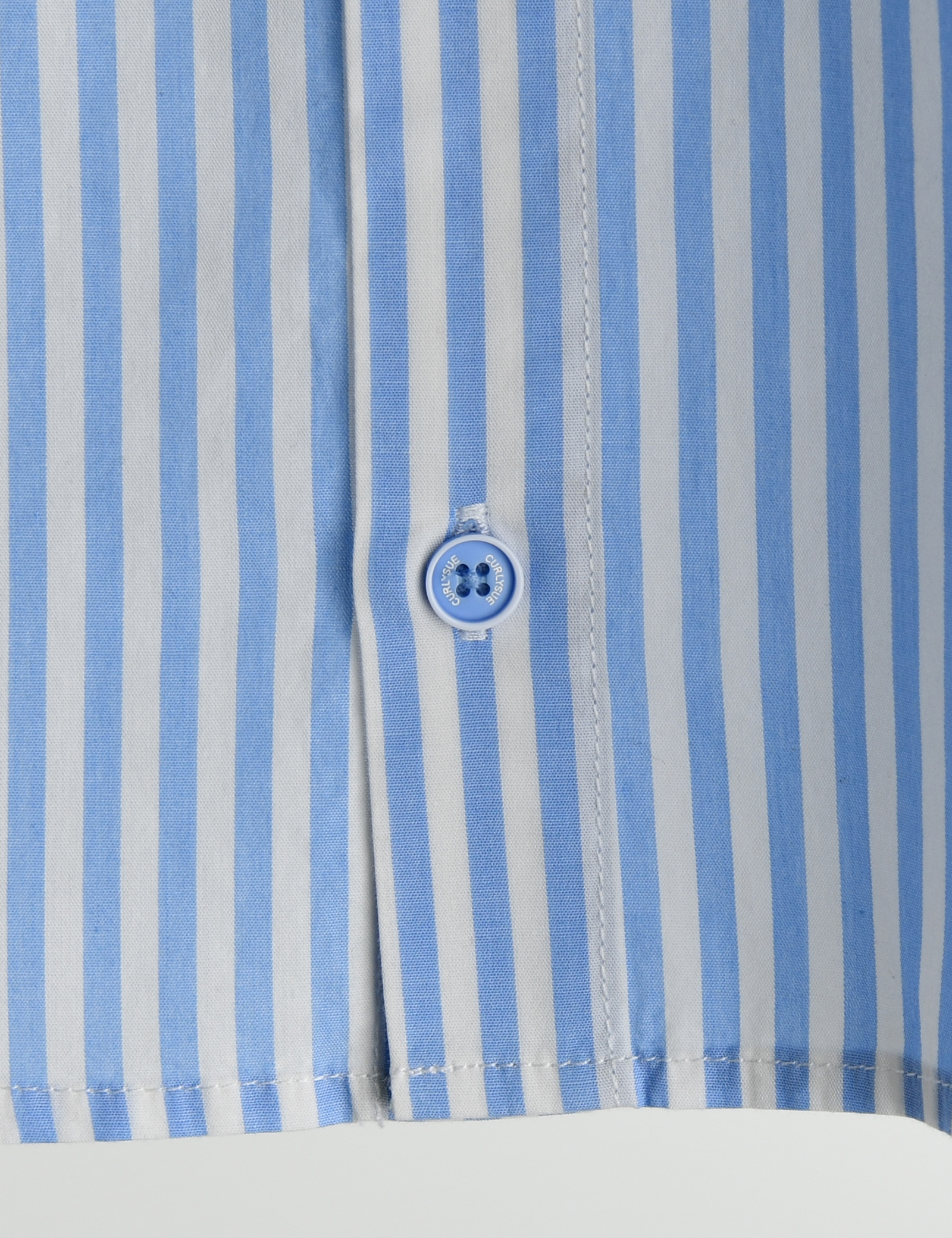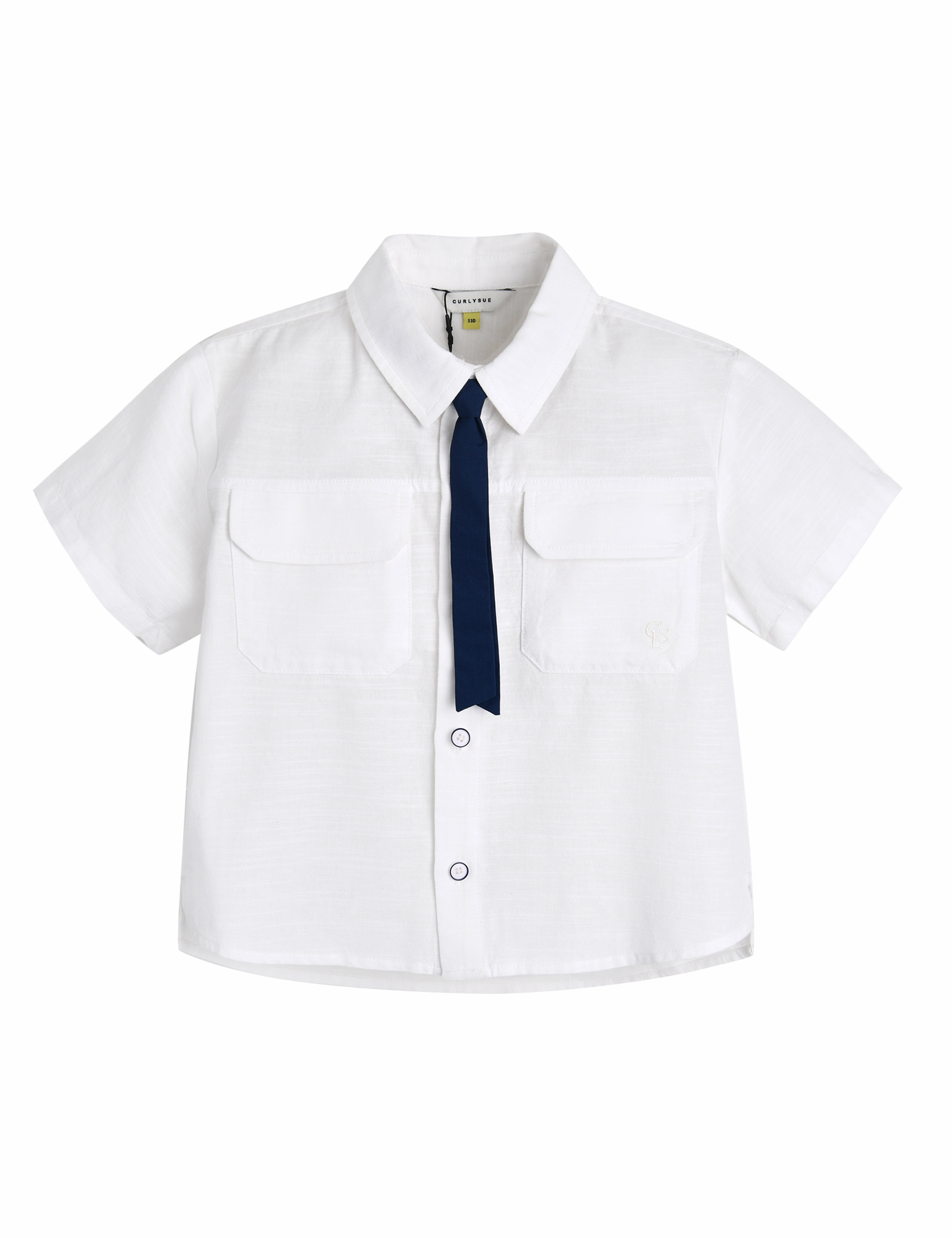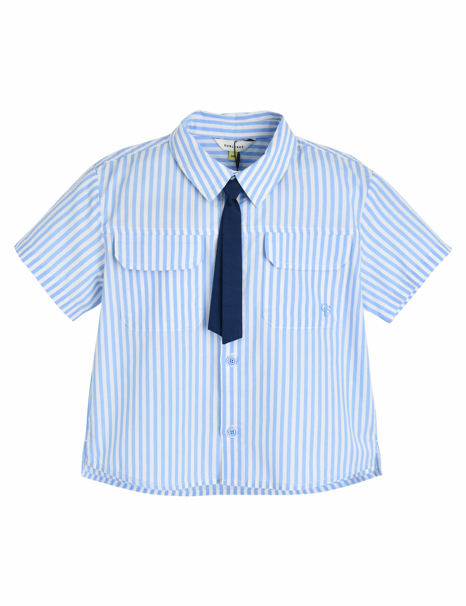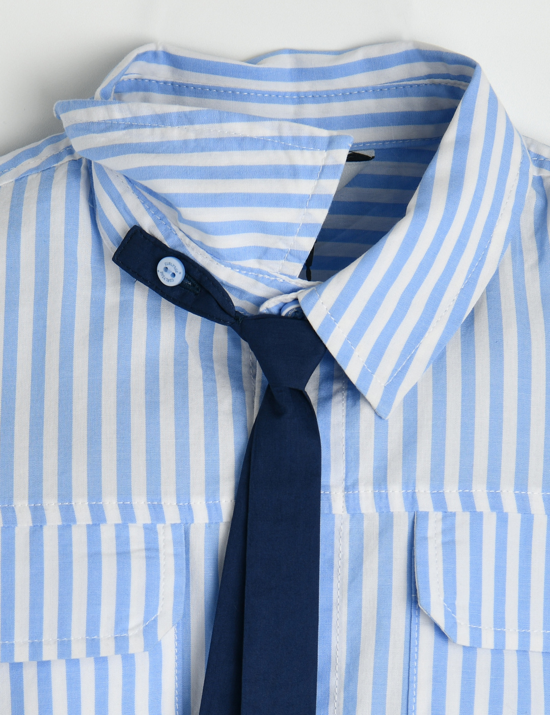 깔끔하면서 고급스러운 원단의 타이 셔츠입니다. 시원한 소재를 사용하였습니다. 넥타이는 단추로 탈부착할 수 있게하였습니다. 고급스러운 룩, 캐쥬얼한룩 두 가지 모드를 다 가진 아이템으로다양하게 연출해 주세요.