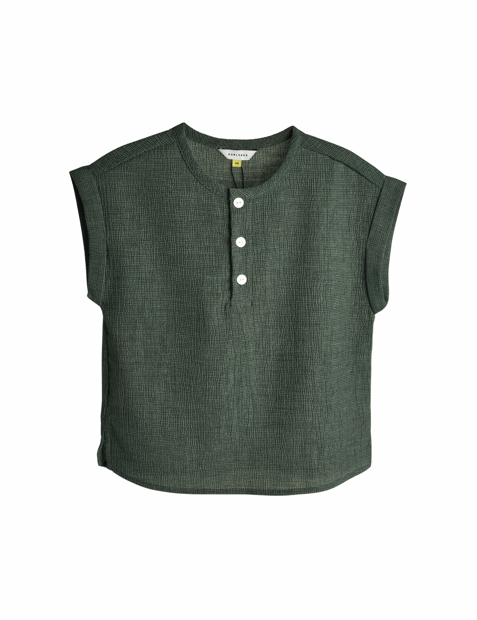 몸에 잘 붙지 않는 요루지 원단을 사용하여 착용 시 시원함을 느낄 수 있는 나시형 셔츠입니다. 넥 부분을 단추로 오픈할 수 있어 착용 시 편하고, 유니크한컬러감으로 고급스럽습니다. 하의와 세트로 입어도 좋은 상품입니다.