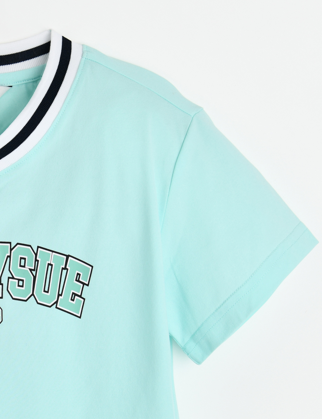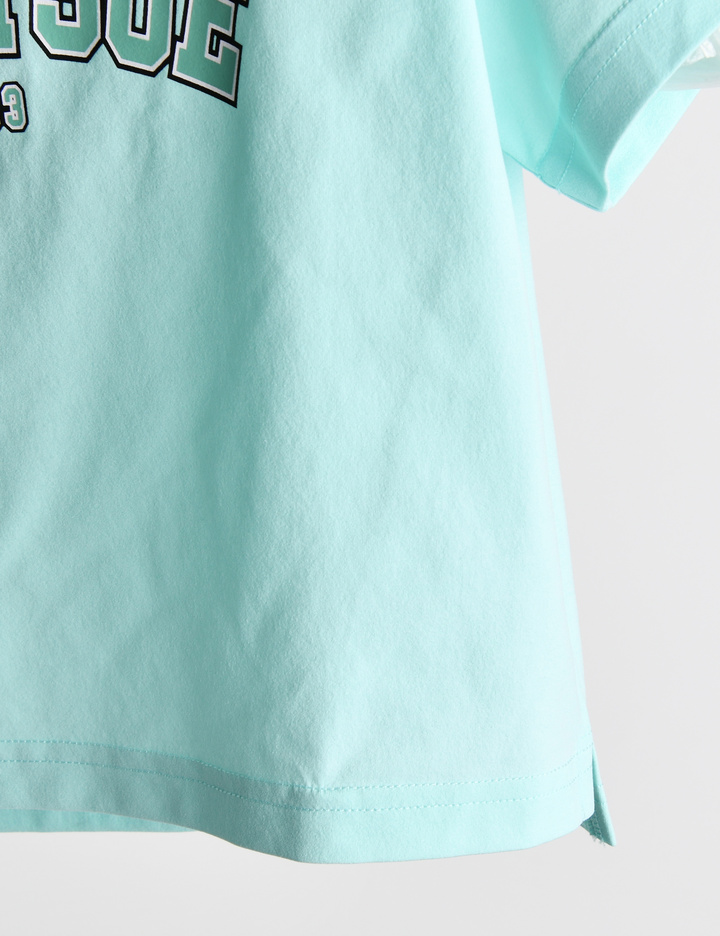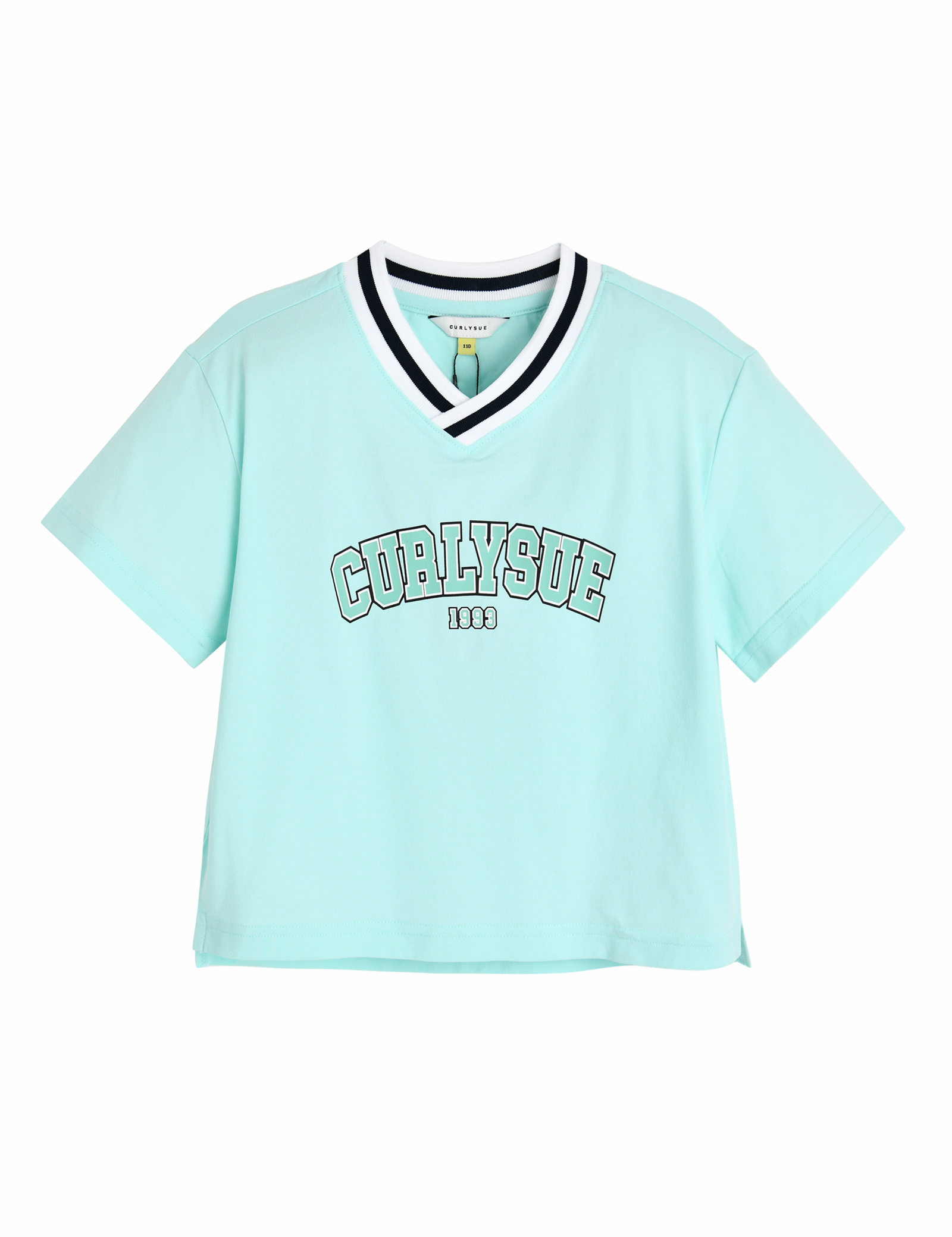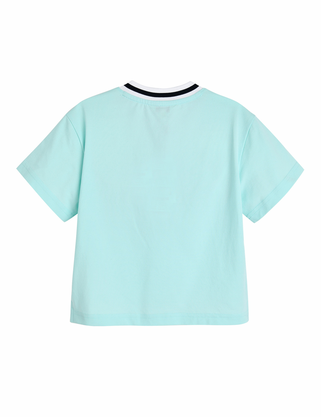 친환경 소재인 소로나 원단으로 제작한티셔츠입니다. 넥 부분에 스트라이프 밴드를 사용하여 스포티한 무드로 코디가가능합니다. 청량한 컬러감의 티셔츠로데일리 코디 아이템으로 추천해 드립니다.