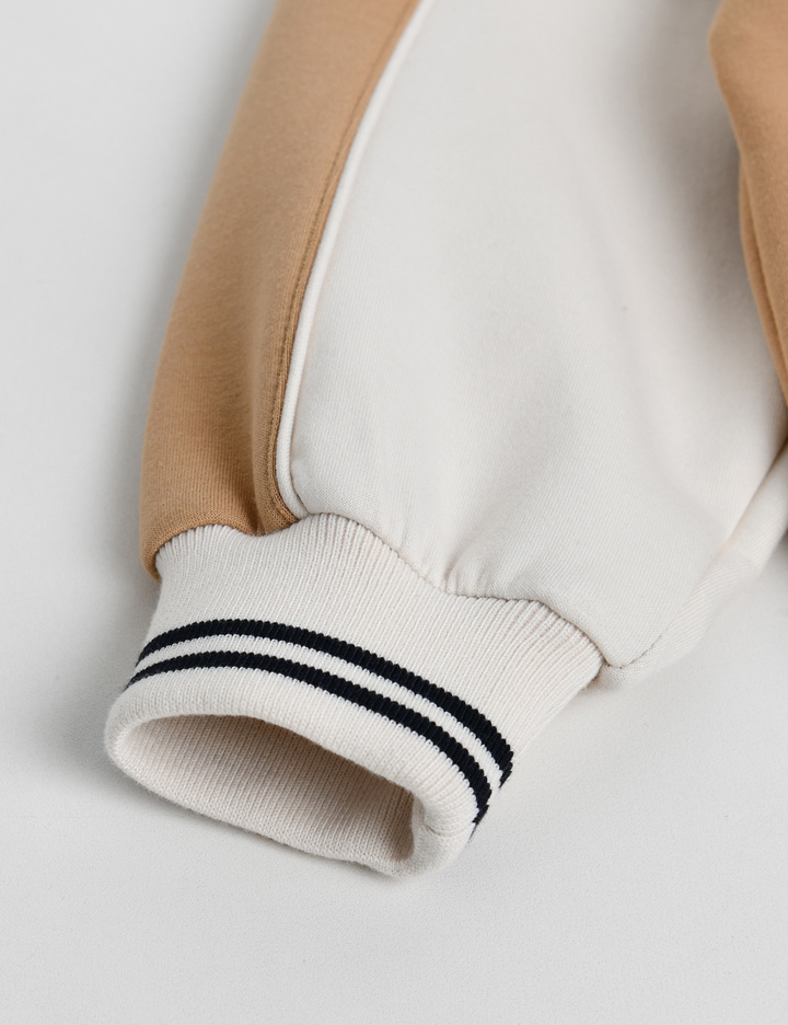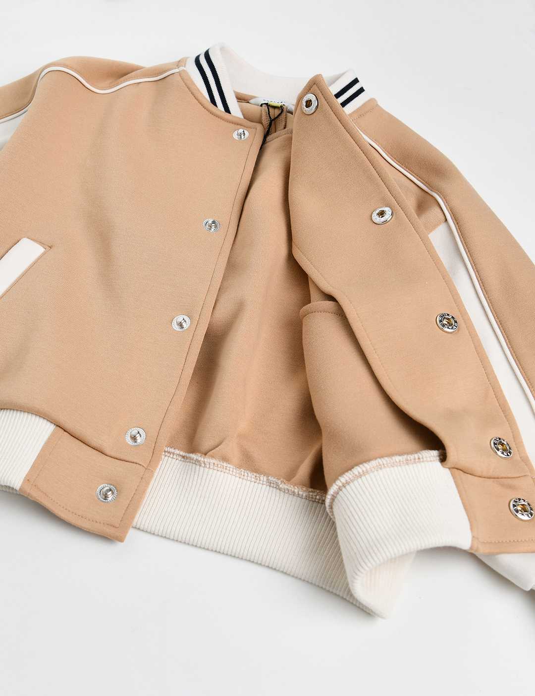 네오프렌 쿠션지를 사용한 바시티 점퍼입니다. 쿠션지 소재 특성상 활동성이편안하면서 터치감이 좋습니다. 어느 코디에도 잘 어울릴 수 있는 컬러 배색 조합으로 모든 코디에 추천 드립니다.