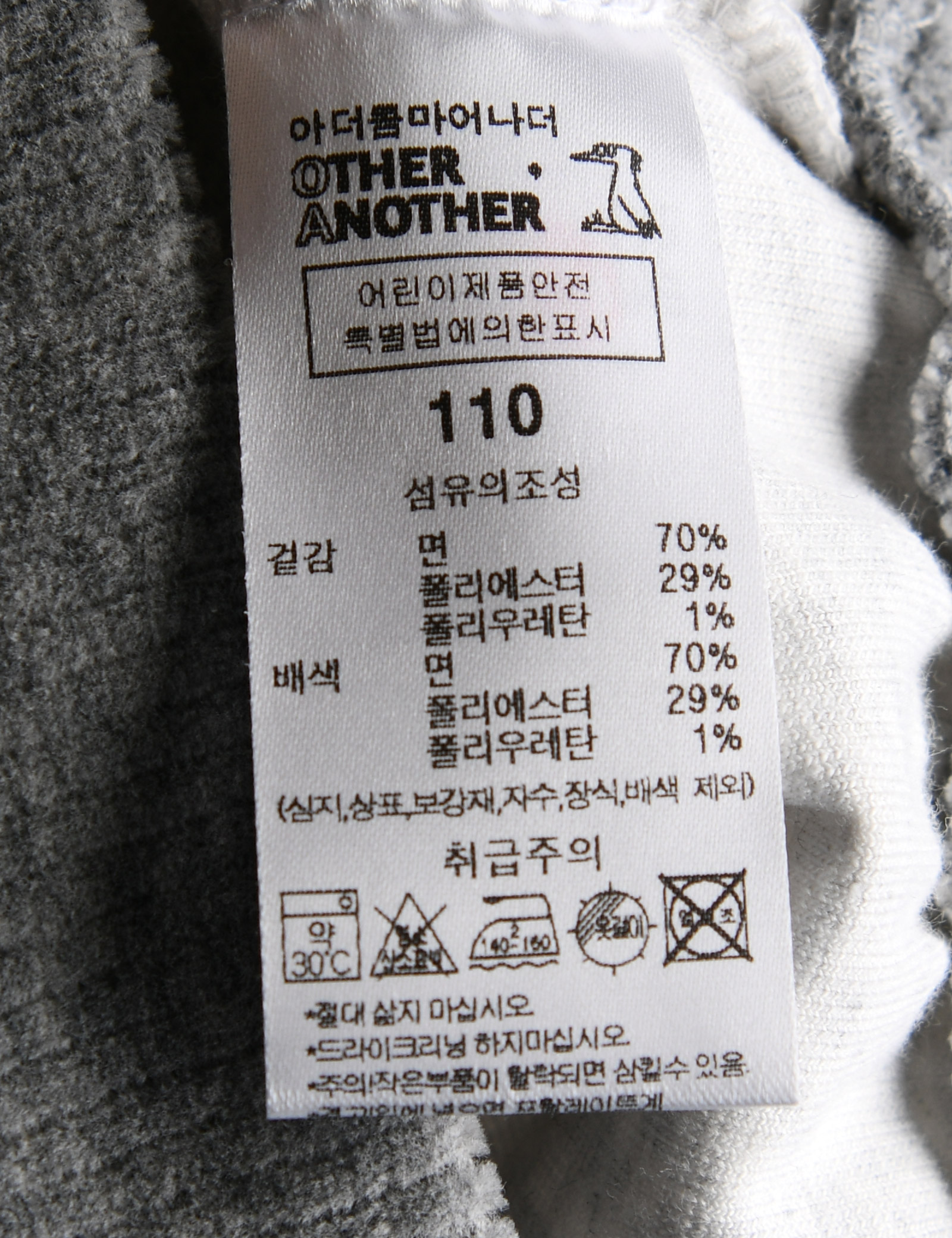 제품소재 (겉감/배색)면70%,폴리에스터29%,폴리우레탄1%