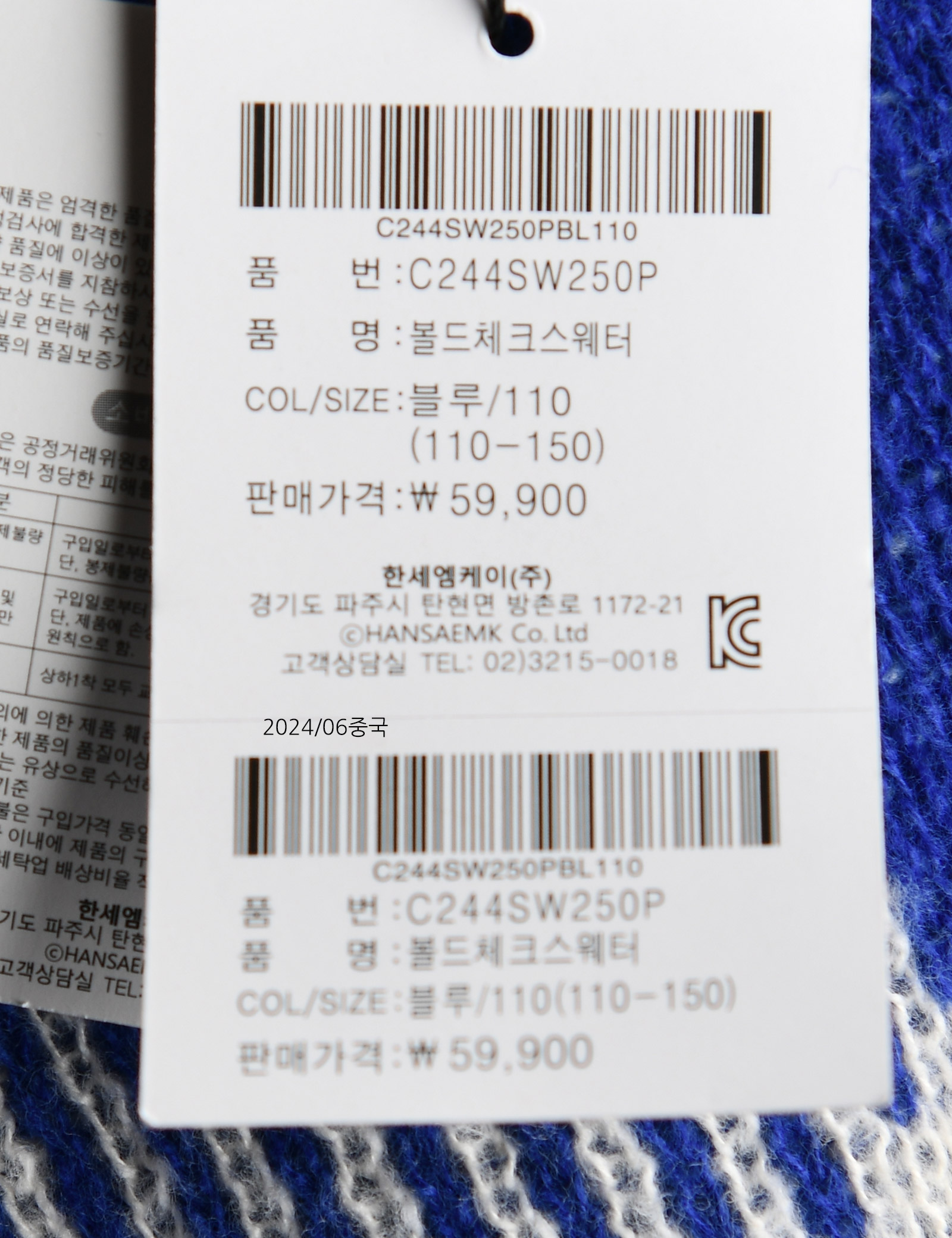 | 상품명 | [컬리수] 볼드체크스웨터 |