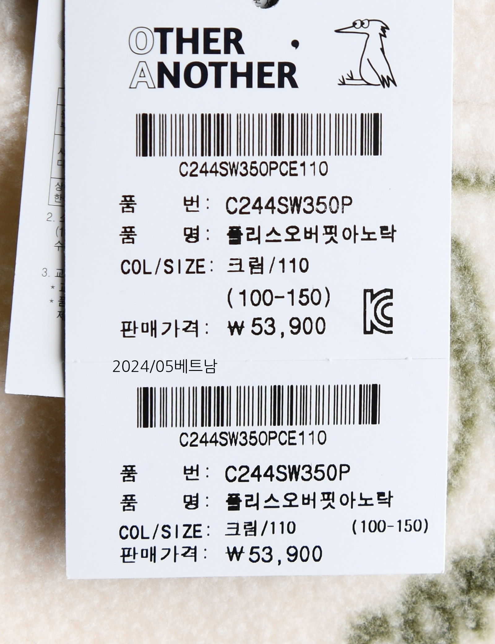 상품명 [컬리수] 플리스오버핏아노락