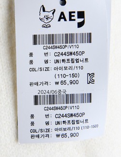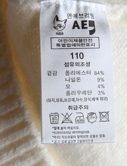| 세탁방법 및 취급시 주의사항 | 본 세품은 손세탁 하십시오(케어라벨 참고) |