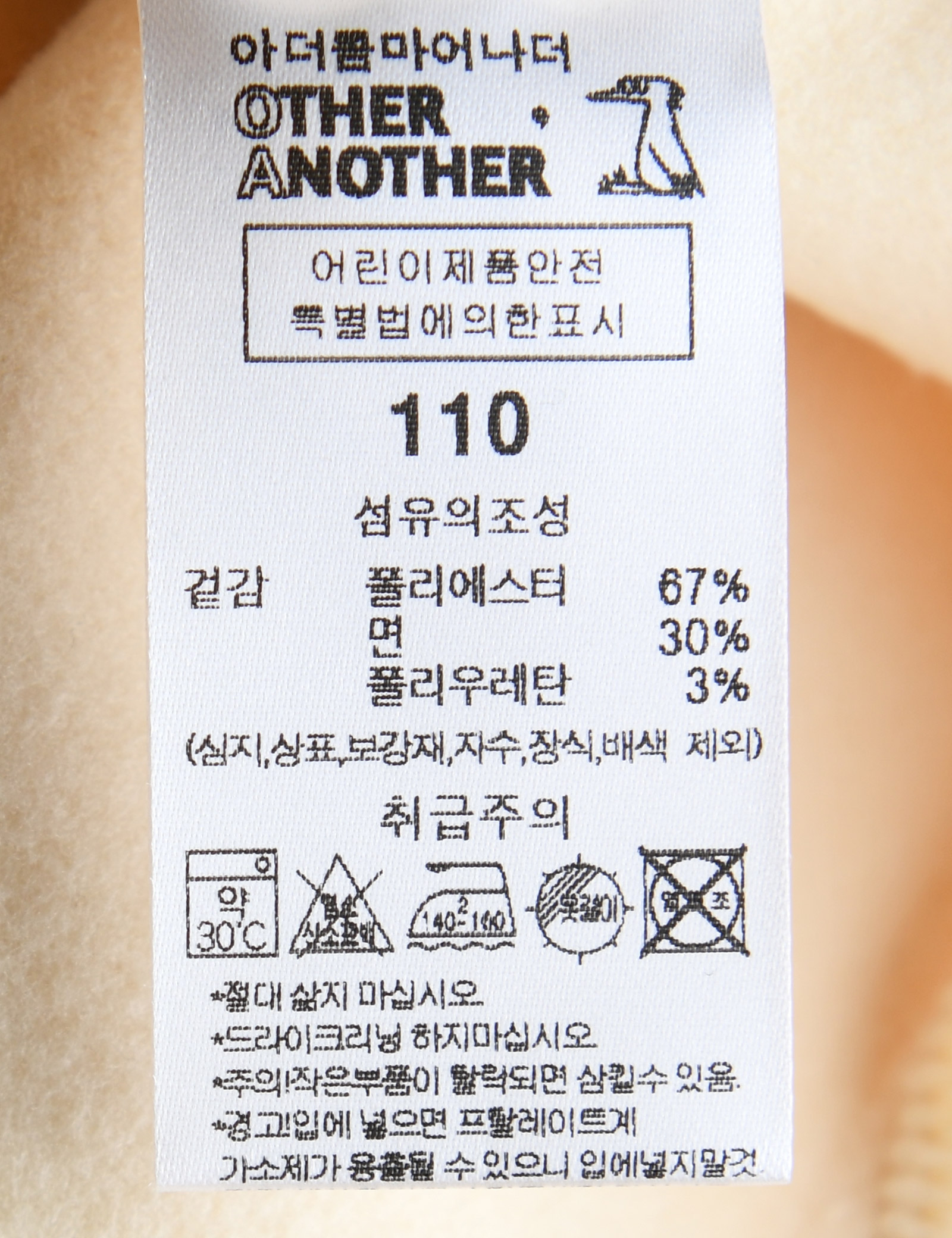 | 세탁방법 및 취급시 주의사항 | 본 세품은 손세탁 하십시오(케어라벨 참고) |