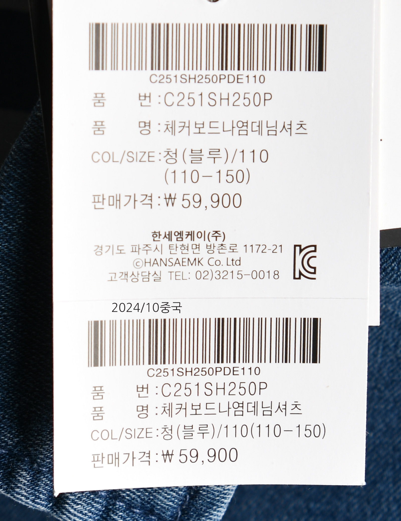 상품명 [컬리수] 체커보드나염데님셔츠
