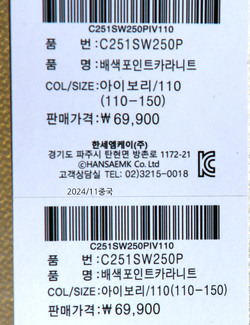 | 세탁방법 및 취급시 주의사항 | 본 세품은 손세탁 하십시오(케어라벨 참고) |