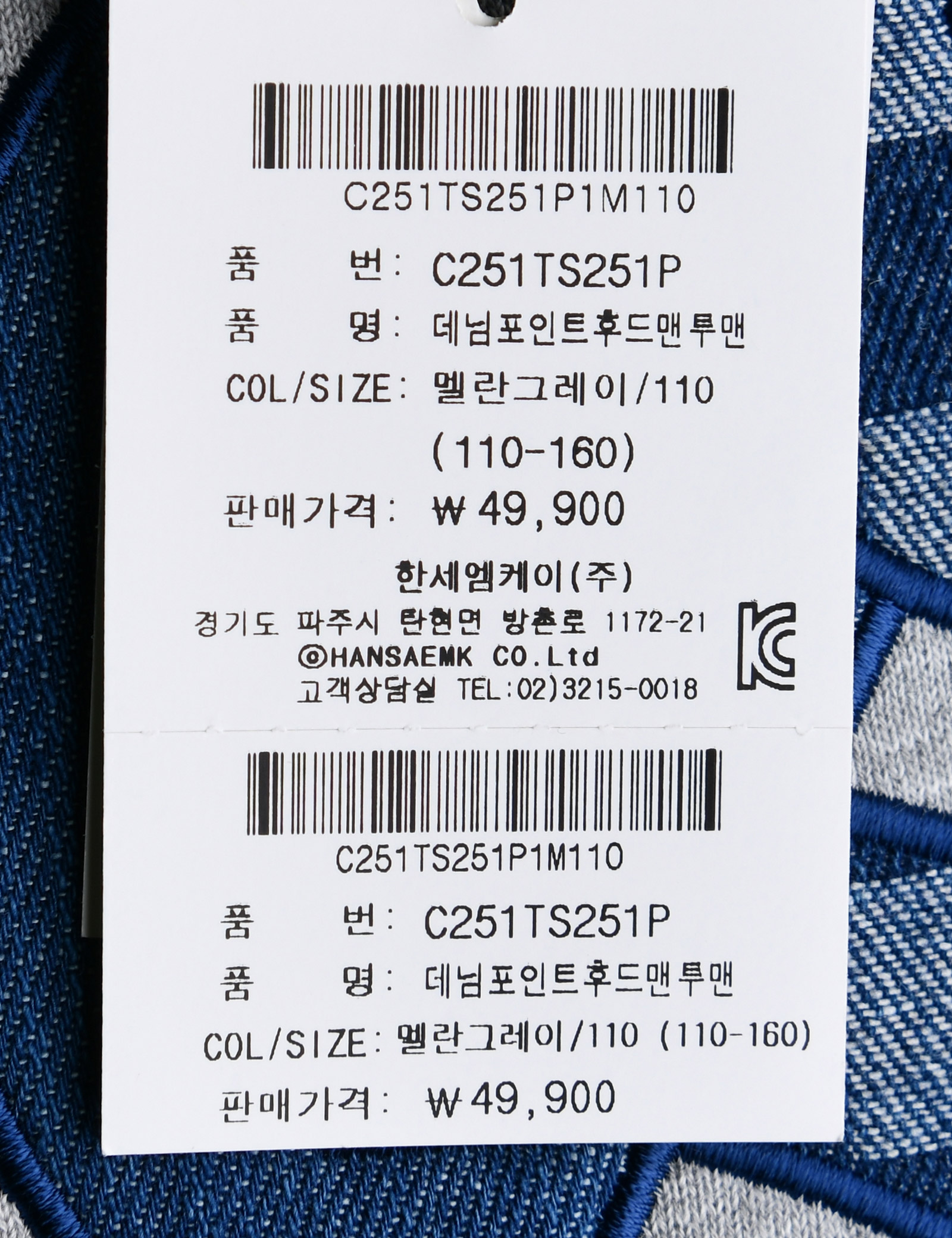 C251TS251P ★스타일데이 행사가 적용상품★ [컬리수] 데님포인트후드맨투맨
