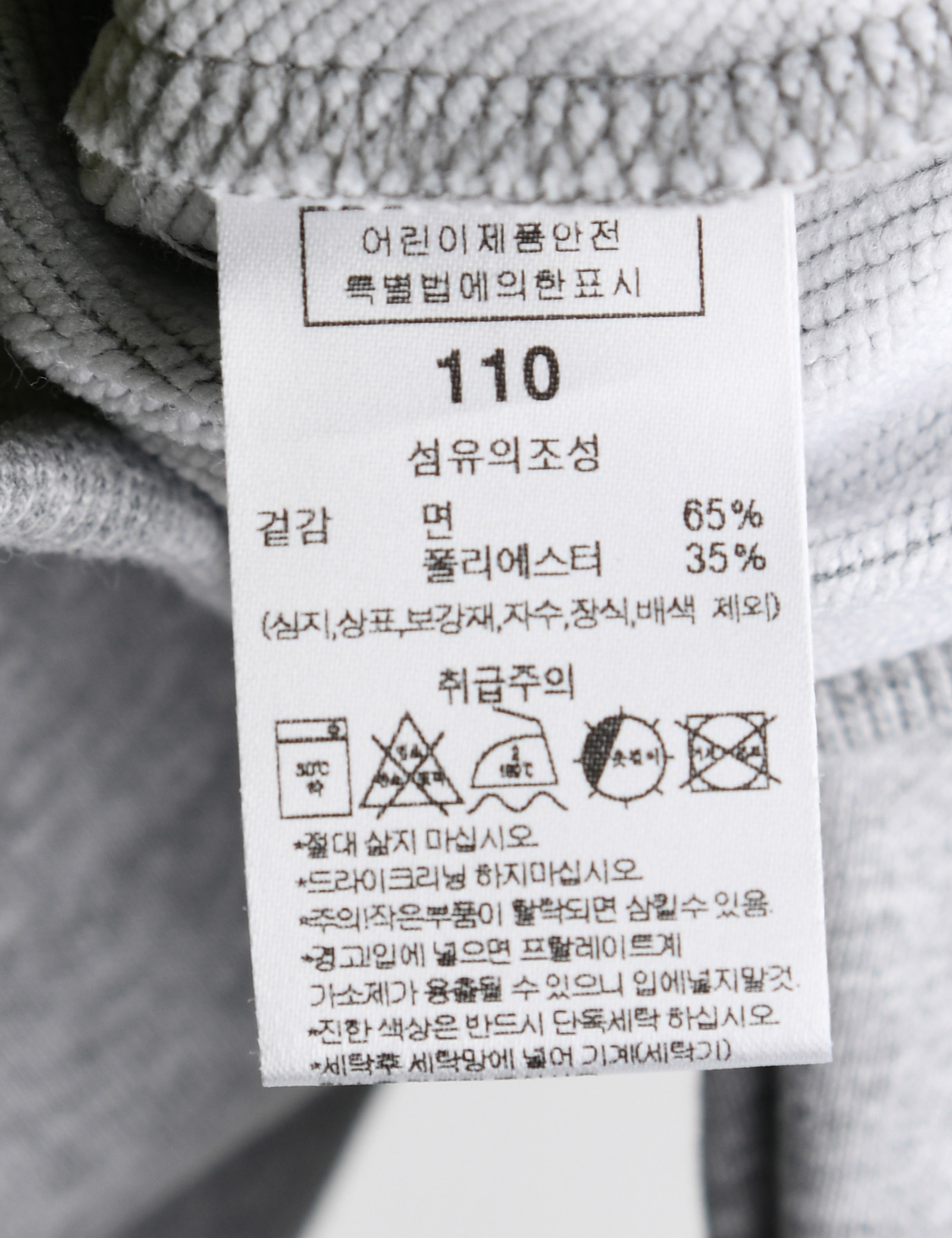 제품소재 (겉감)면65%,폴리에스터35%