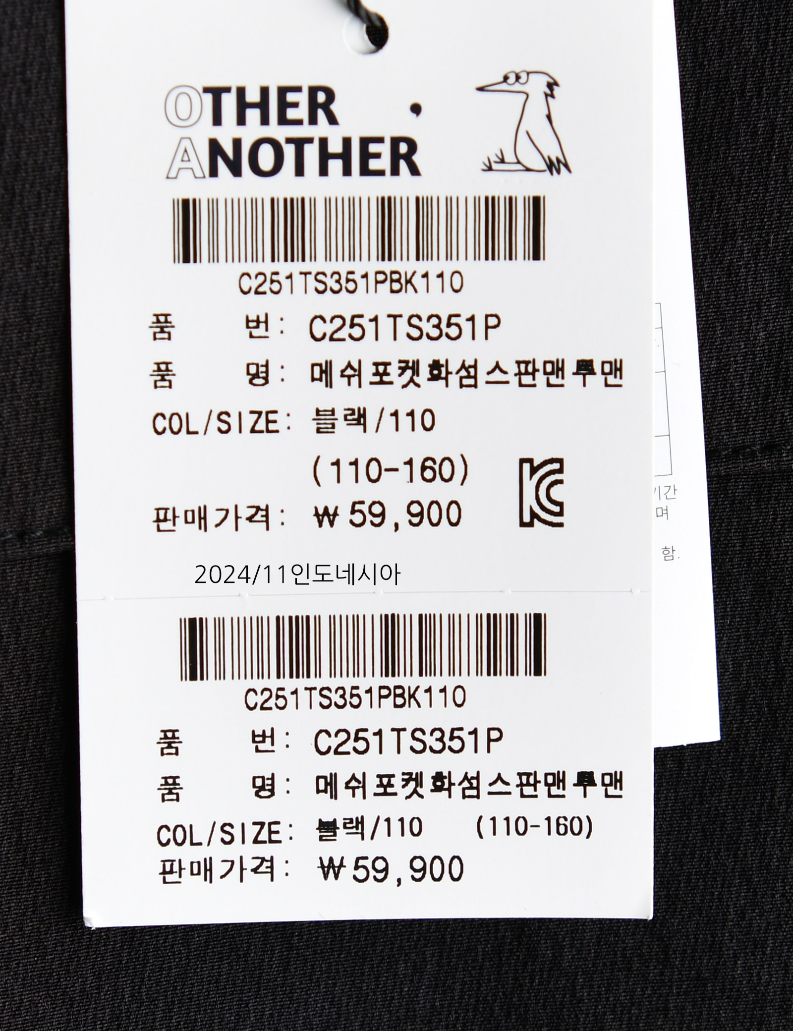 해당 인증정보는 판매자가 등록한 것으로 등록정보에 대한 일체의 책임은 판매자에게 있습니다.