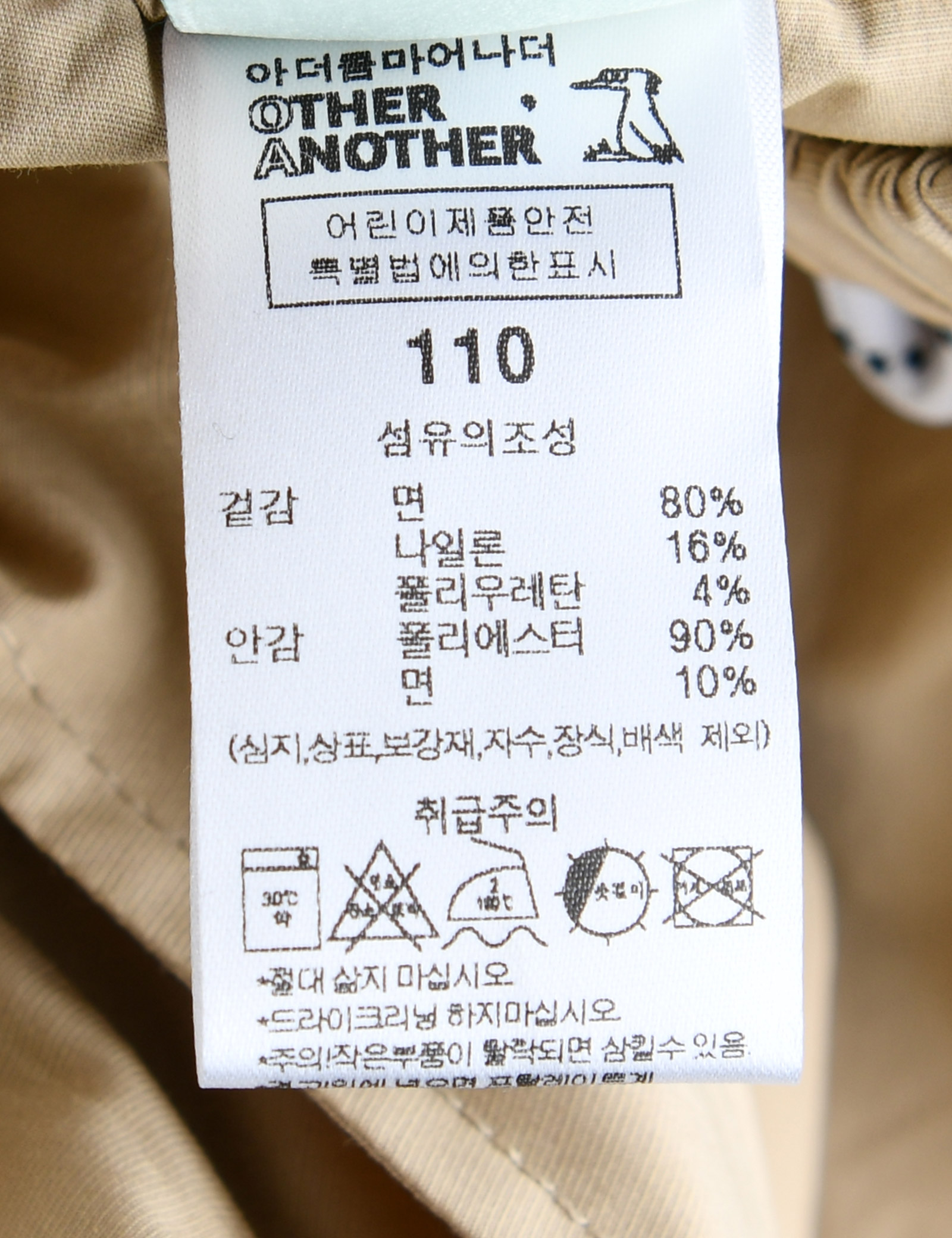 제품소재 (겉감)면80%,나일론16%,폴리우레탄4%(안감)폴리에스터90%,면10%