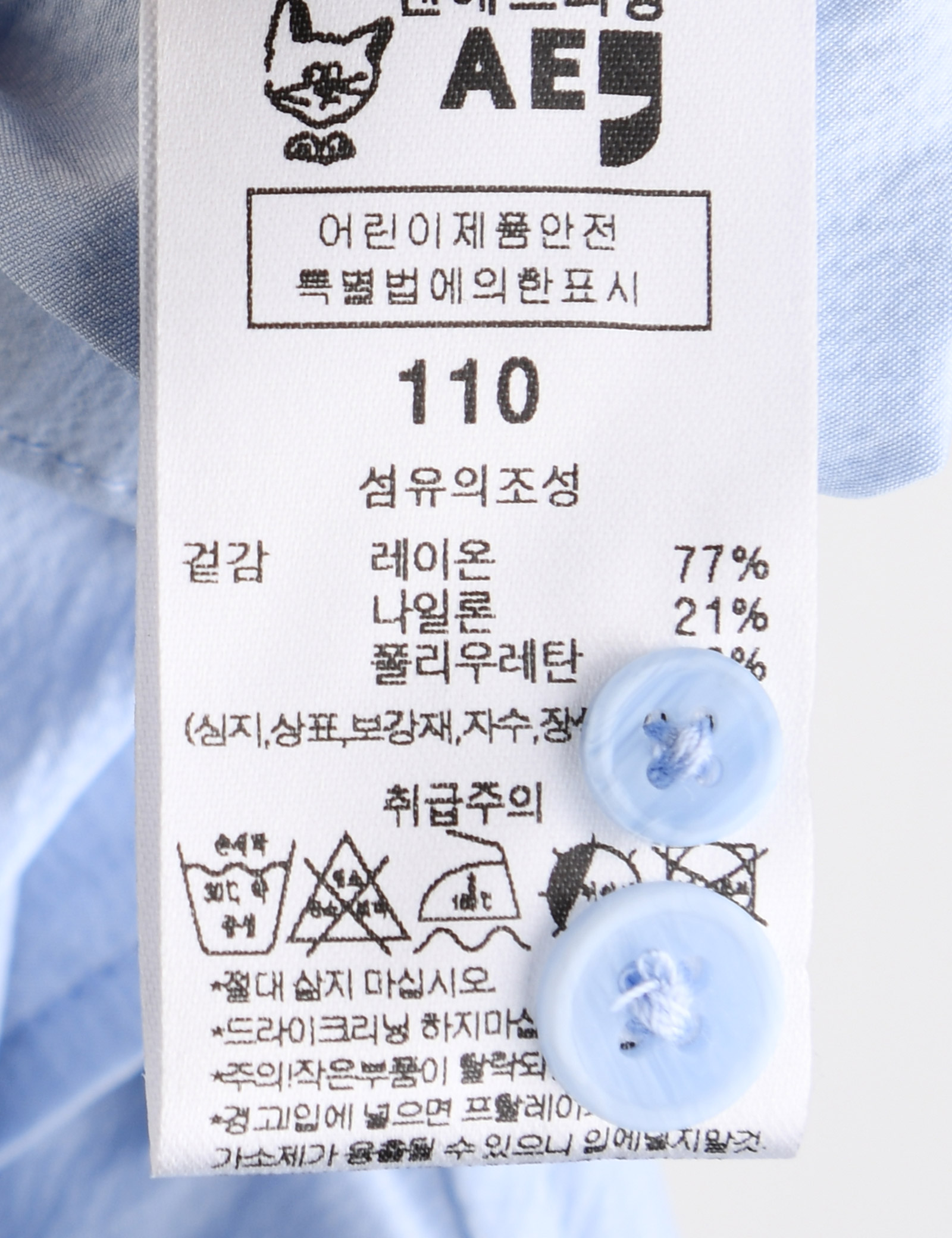 세탁방법 및 취급시 주의사항 본 세품은 손세탁 하십시오(케어라벨 참고)