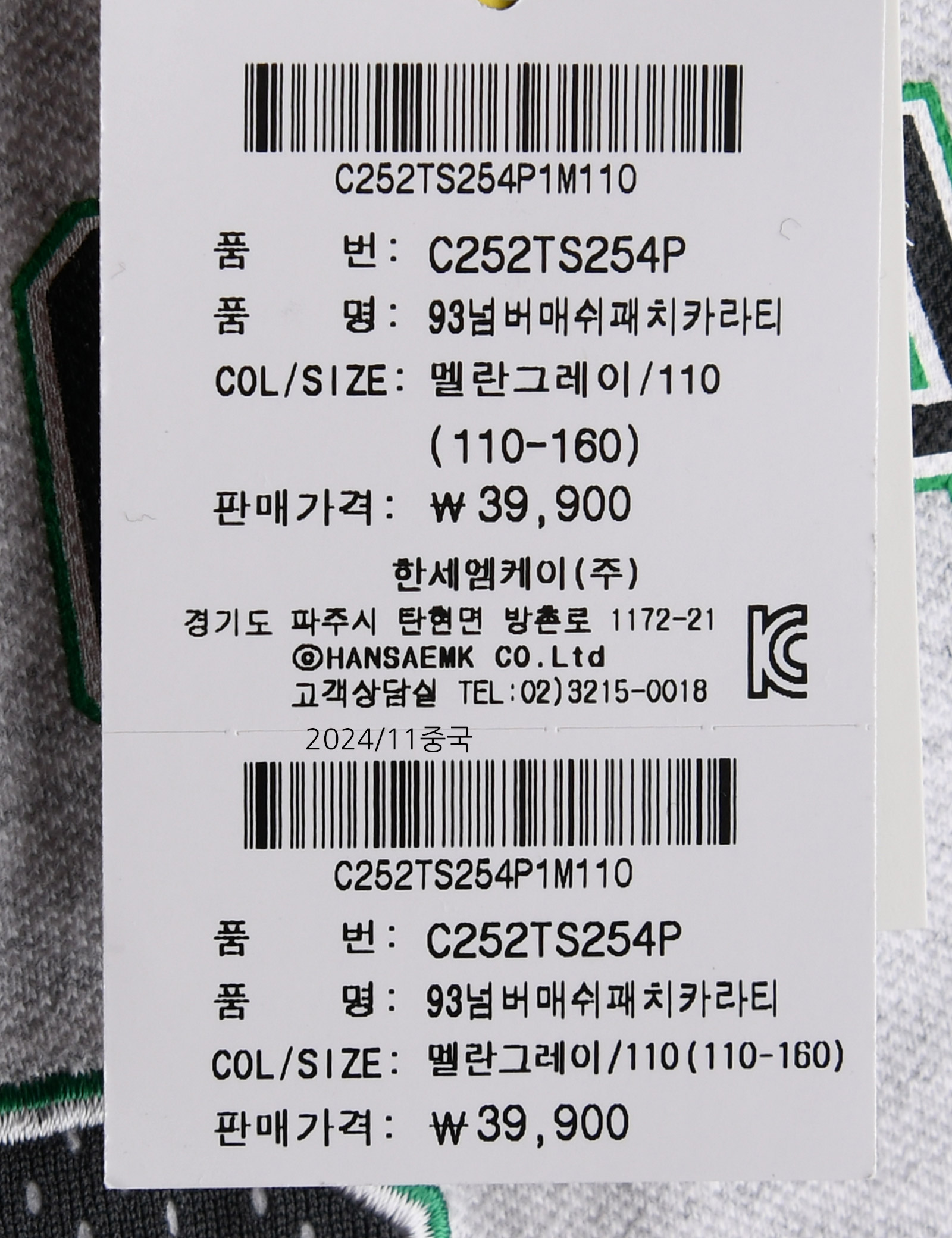 해당 인증정보는 판매자가 등록한 것으로 등록정보에 대한 일체의 책임은 판매자에게 있습니다.