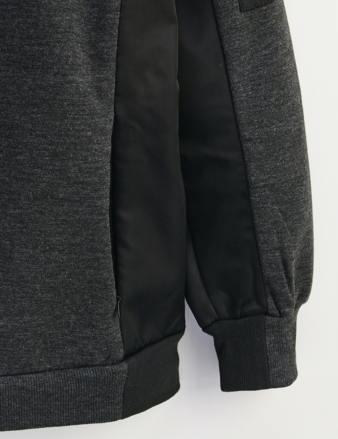 -점퍼와 믹스된 듯한 우븐 배색이 유니크한 세미 루즈핏 후드