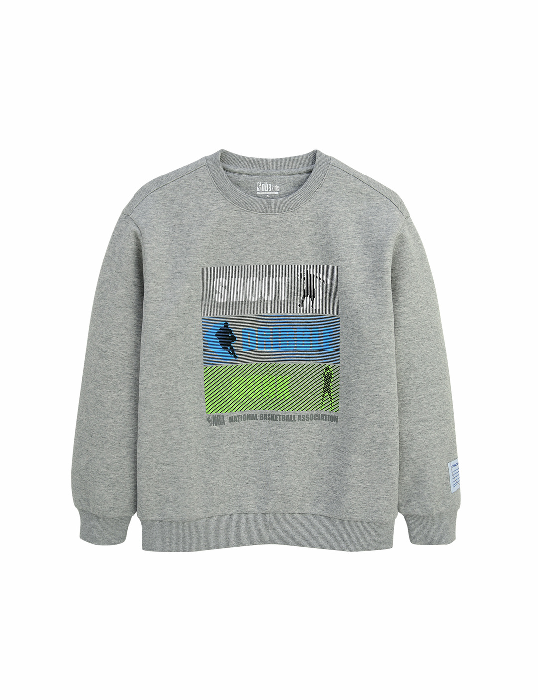 -농구 모티브의 다양한 용어와 포즈를 NBA만의 스포티하고 컬러풀한 감성으로 풀어낸 프린트가 포인트인 기모 맨투맨