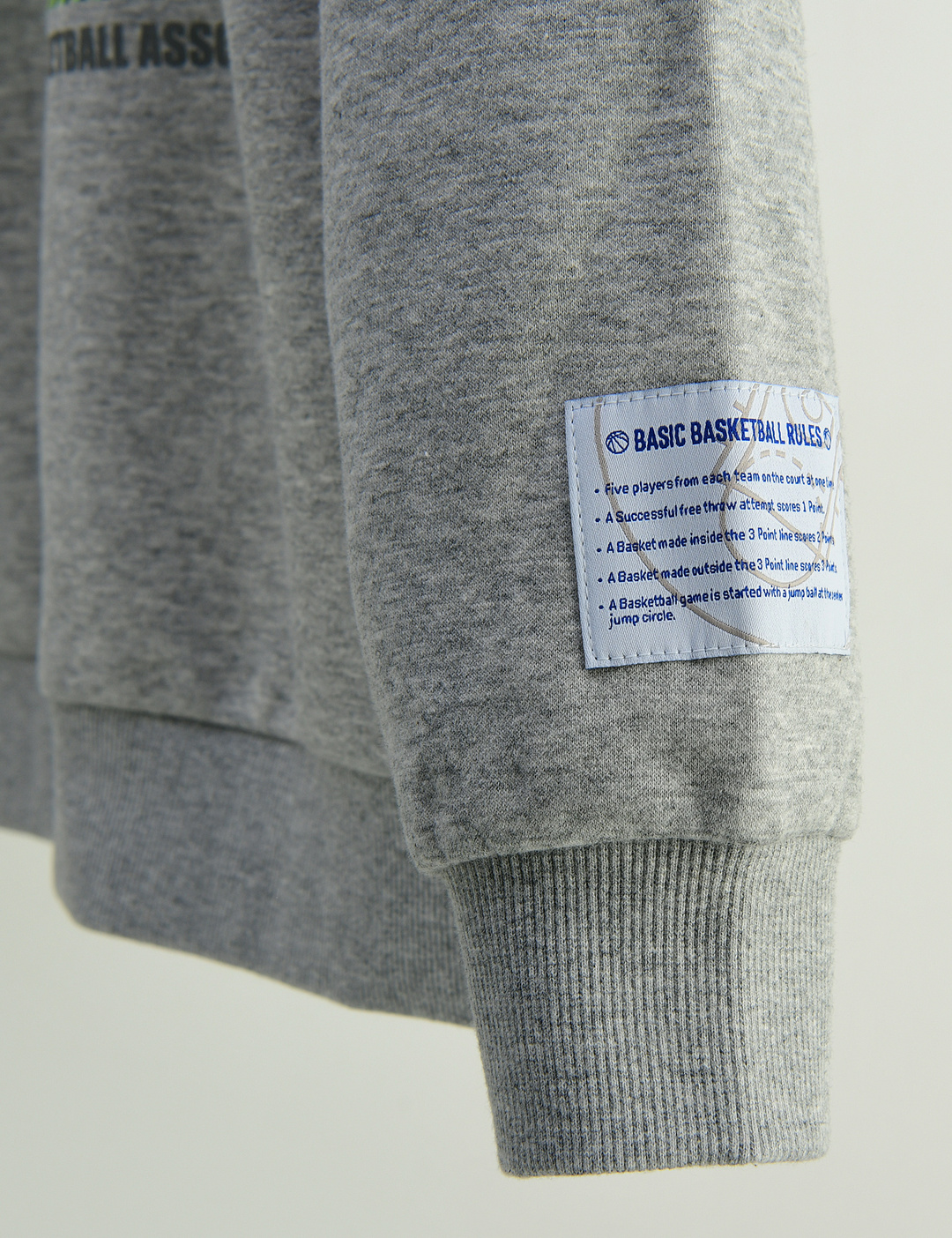 -손목에 농구 규칙이 적혀있는 와펜을 더해 디테일까지 신경 쓴 아이템