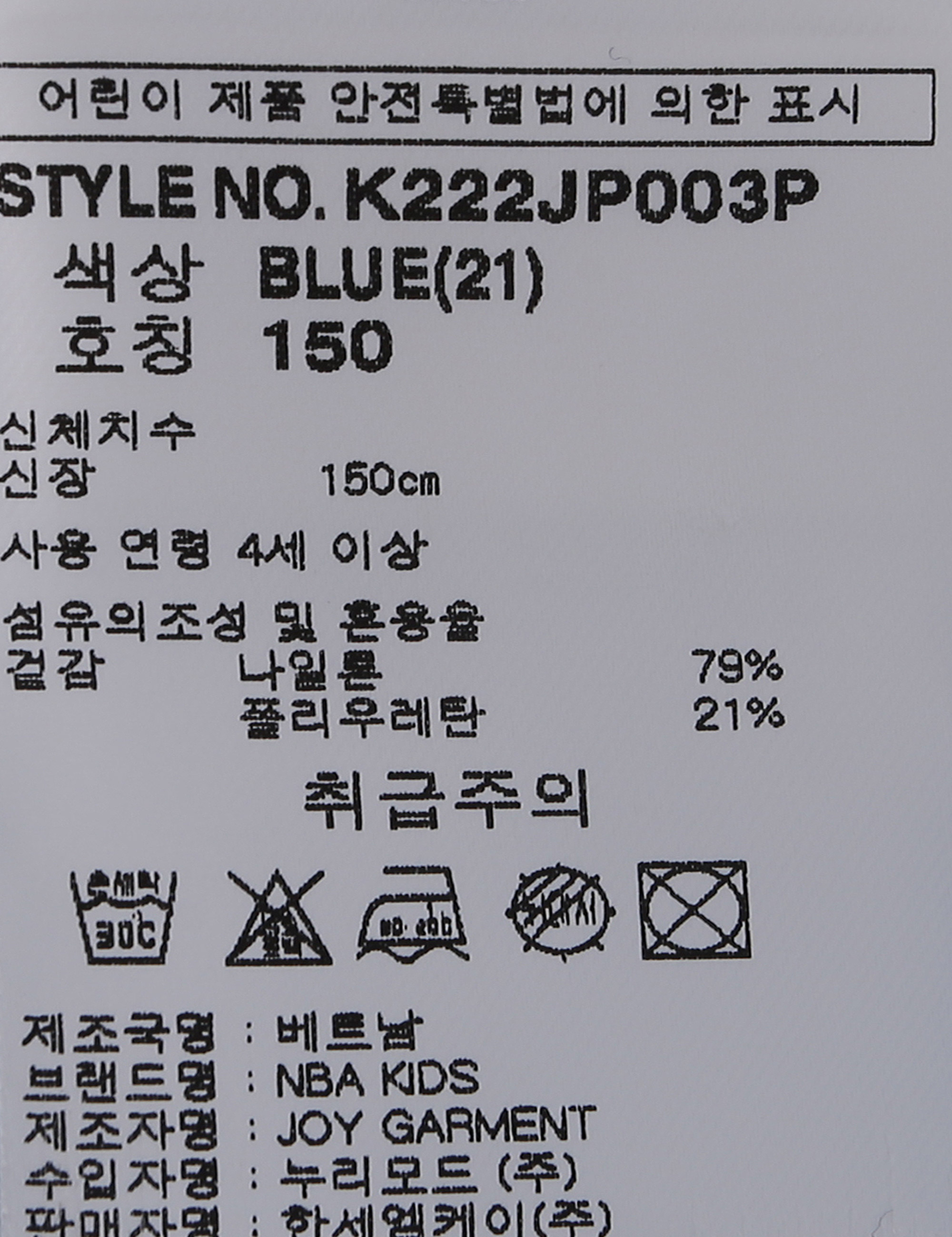 | 상품명 | NBA 베이직 홑겹 바람막이 점퍼(K222JP003P) |