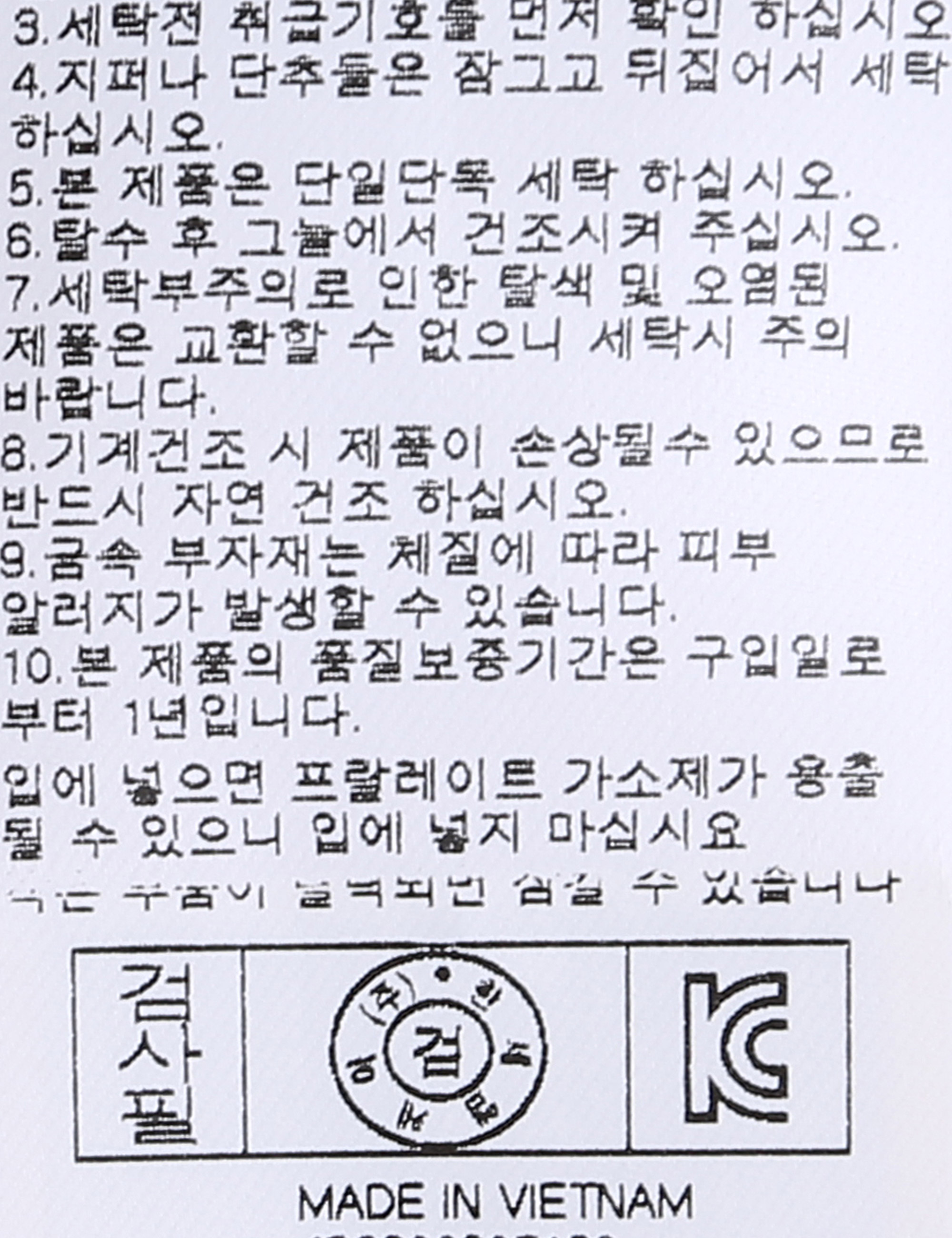 | 세탁방법 및 취급시 주의사항 | 중성세제로 단 시간내에 세탁하십시오.(케어라벨참고) |