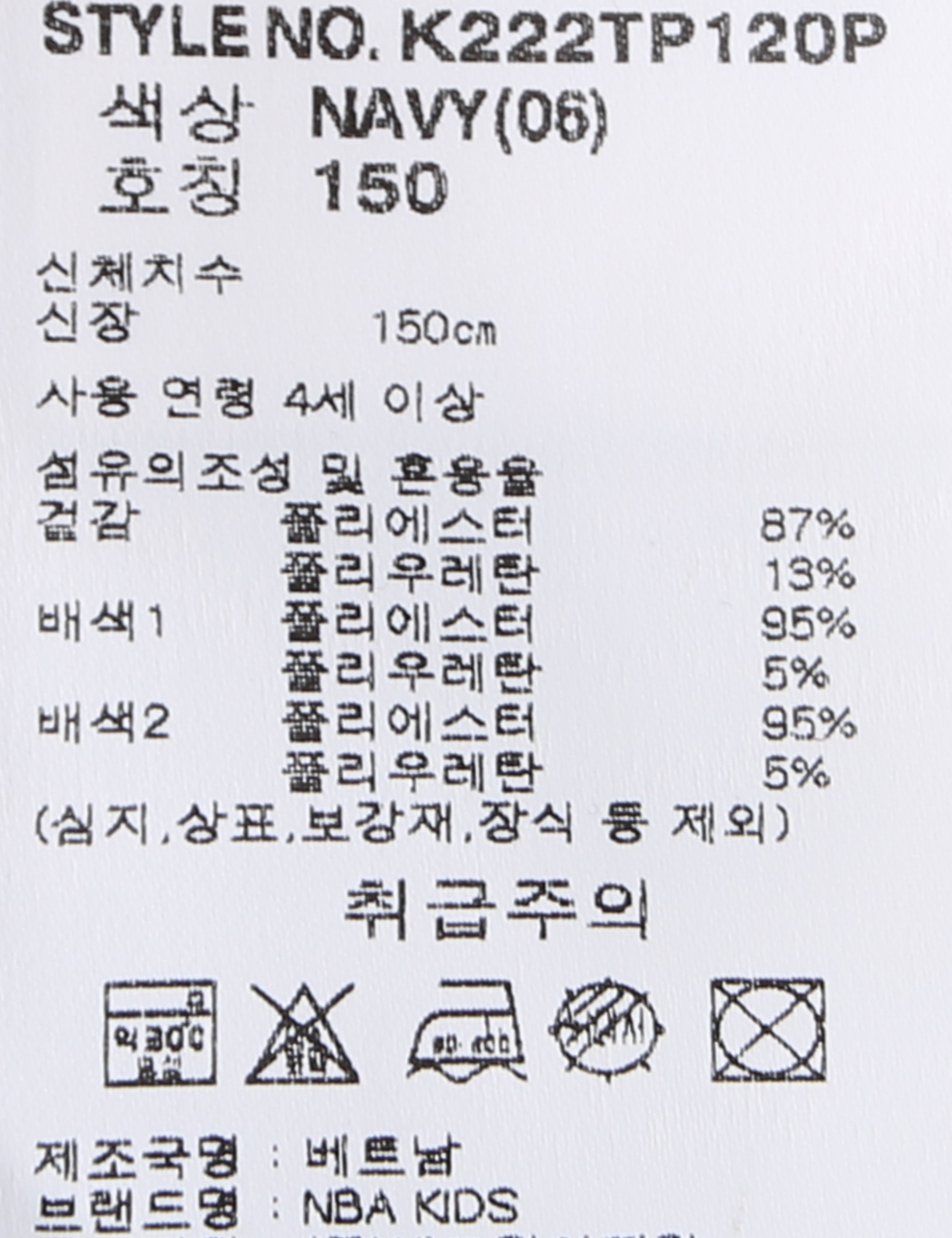 제품소재 [겉감]폴리에스터87% 폴리우레탄13% [배색1]폴리에스터95% 폴리우레탄5% [배색2]폴리에스터95% 폴리우레탄5%