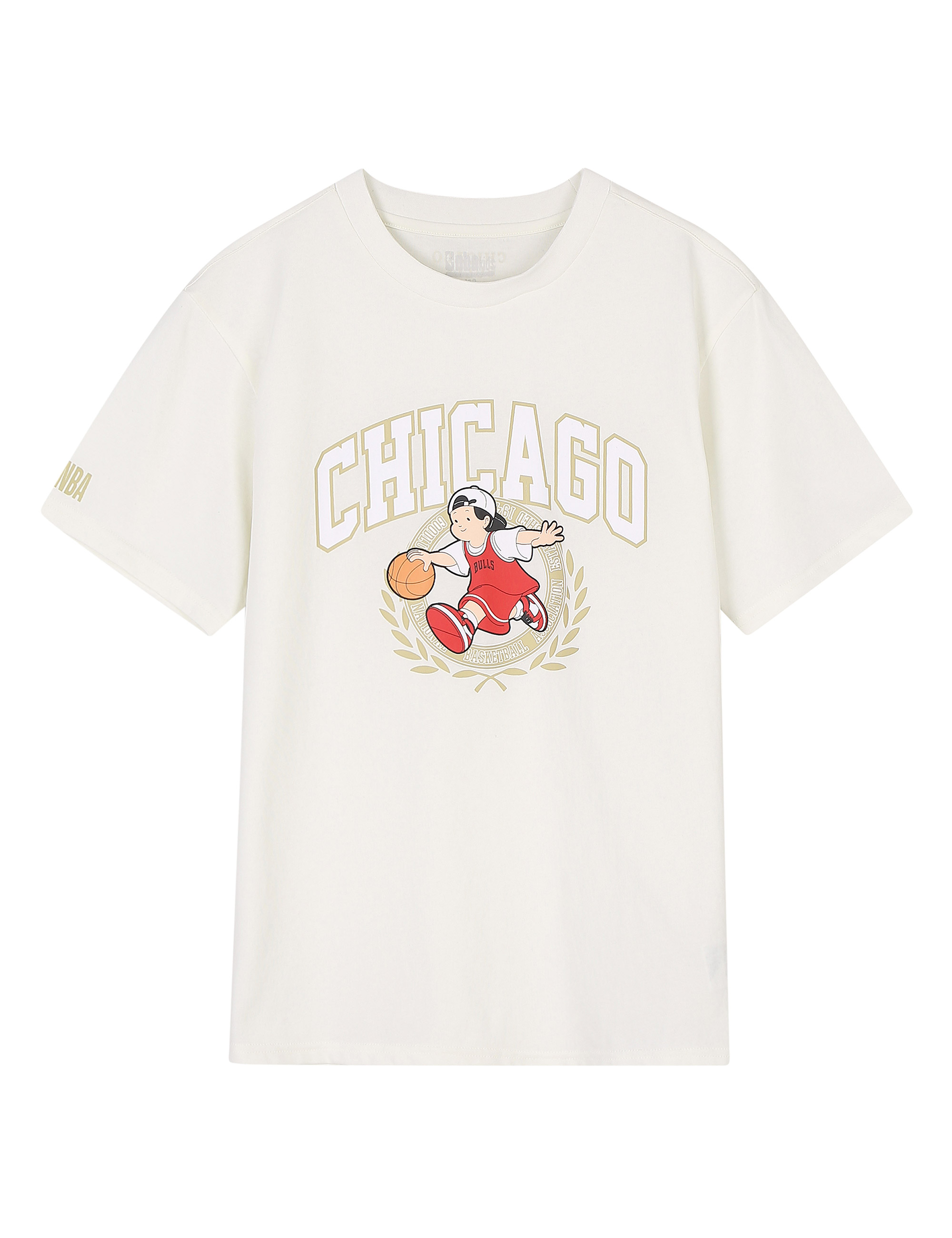-클래식 무드를 담은 아치형 로고와 아이들의 상상력을 자극하는 경쾌한 캐릭터가 그려진 티셔츠