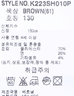 브랜드 홈 바로가기| 제품소재 | [겉감]폴리에스터70% 면26% 기타섬유4% |
